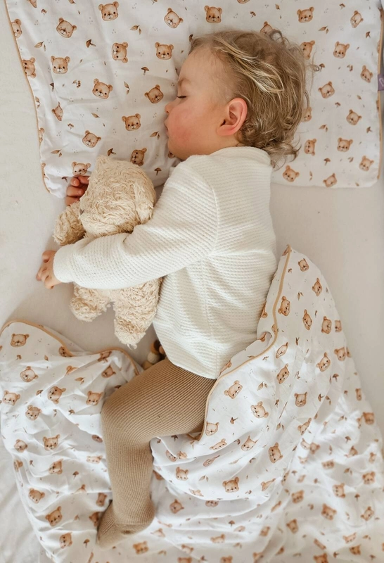 POŚCIEL MUŚLINOWA z falbanką 120x90 kołderka + poduszka WYPEŁNIENIE "TEDDY BEAR"