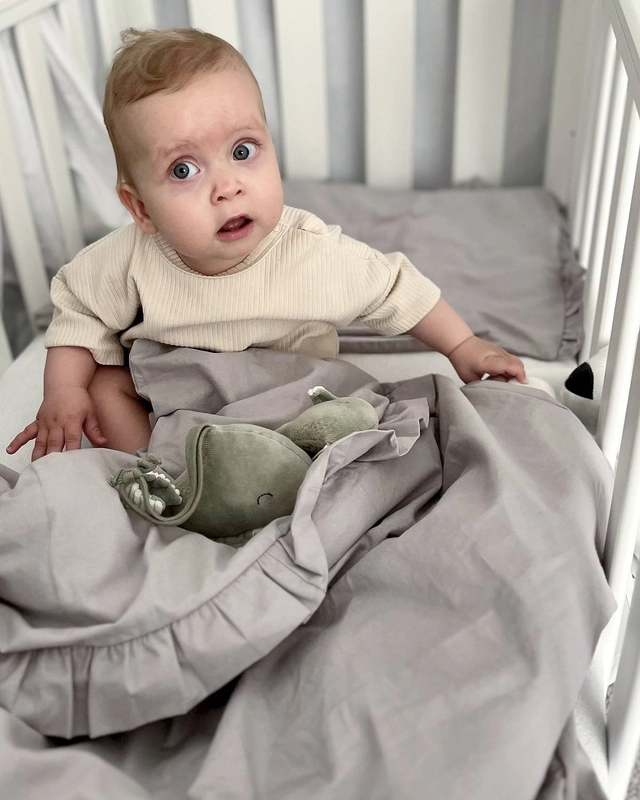 POŚCIEL MUŚLINOWA z falbanką 120x90 kołderka + poduszka WYPEŁNIENIE