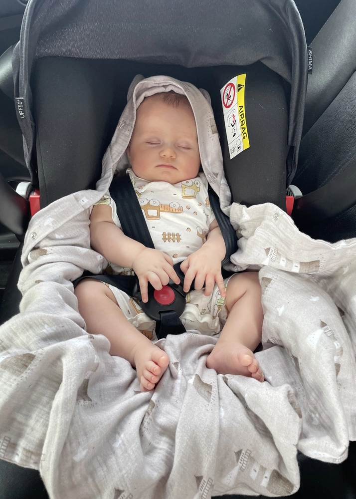 Muślinowy otulacz z kapturkiem do fotelika letni