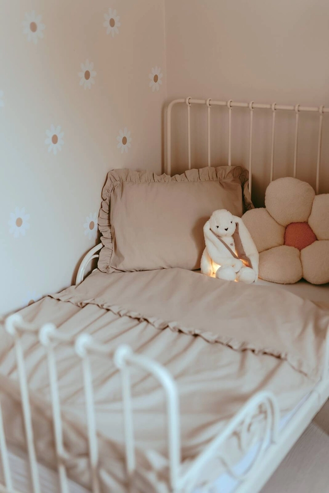 POŚCIEL MUŚLINOWA z falbanką 120x90 kołderka + poduszka WYPEŁNIENIE "LITTLE FLOWERS"