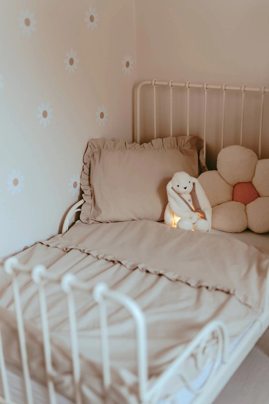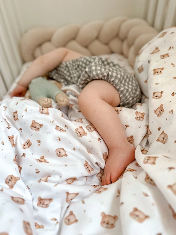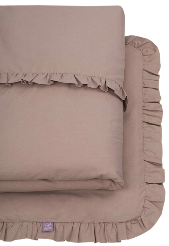 POŚCIEL MUŚLINOWA z falbanką 120x90 kołderka + poduszka WYPEŁNIENIE "TEDDY BEAR"