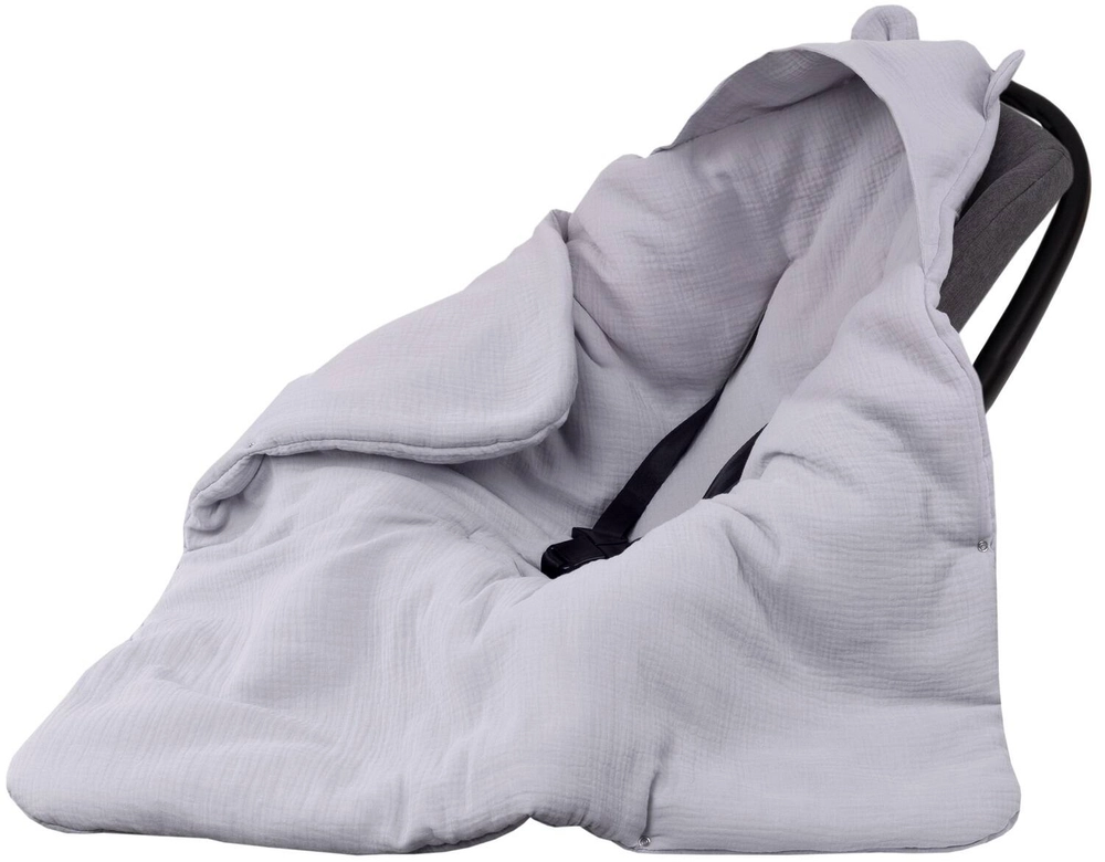 Kocyk otulacz do fotelika z kapturkiem MUŚLINOWY ocieplany