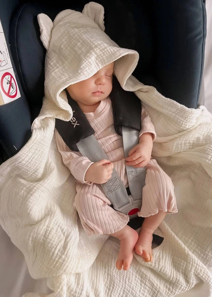 Muślinowy otulacz z kapturkiem do fotelika letni