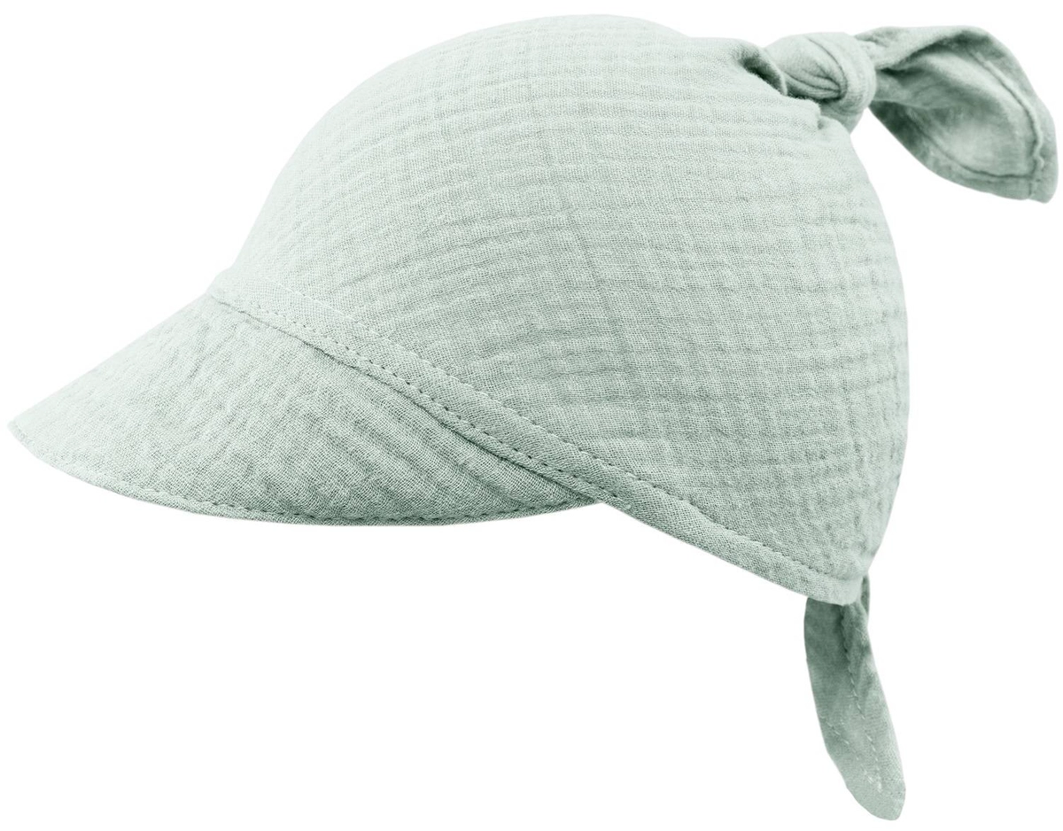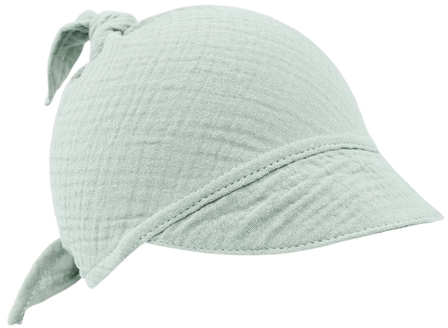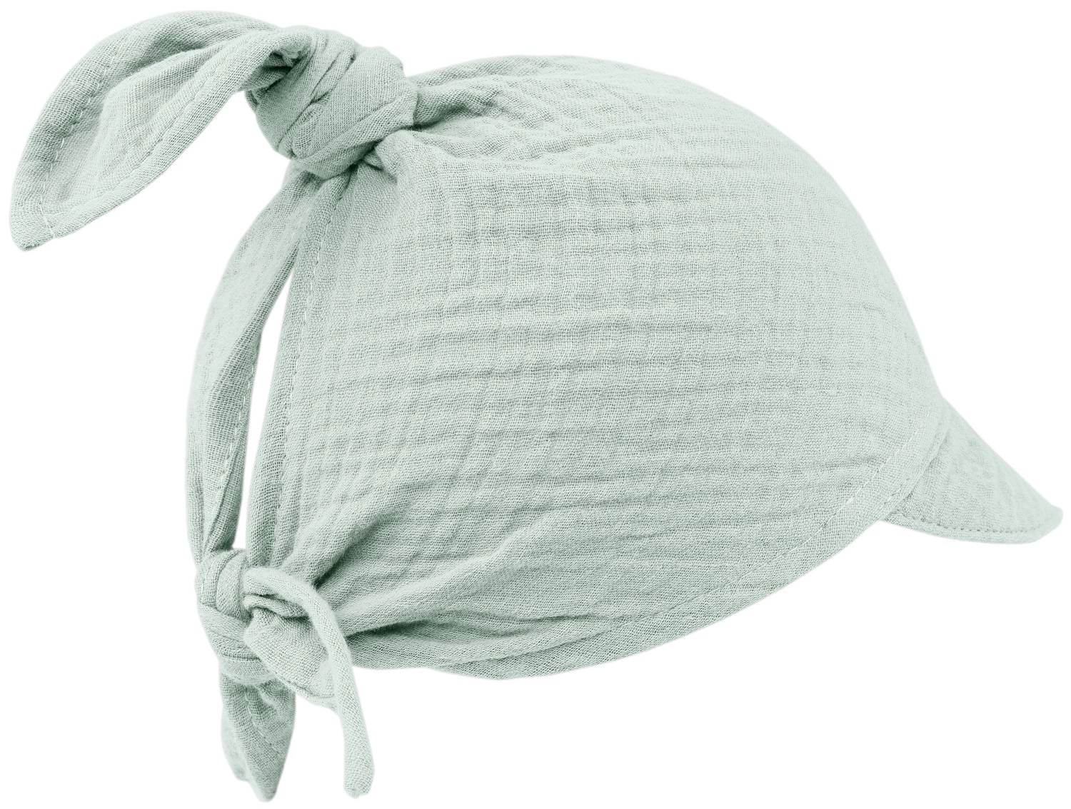Muślinowa chusteczka na głowę z daszkiem uszyta z najwyższej jakości muślinu bawełnianego.