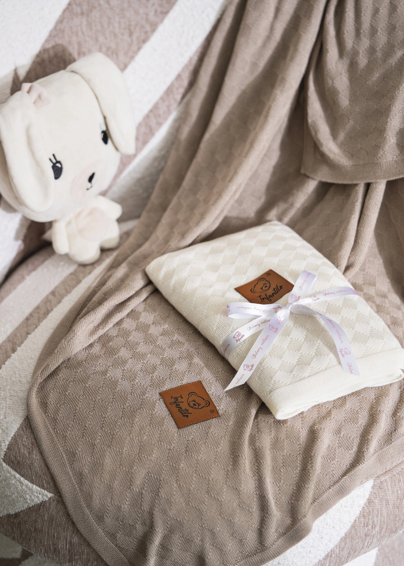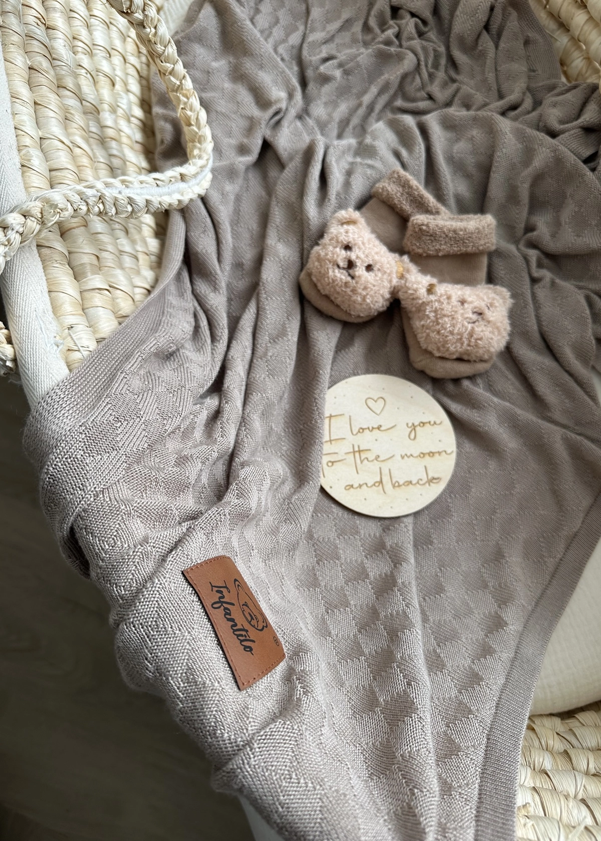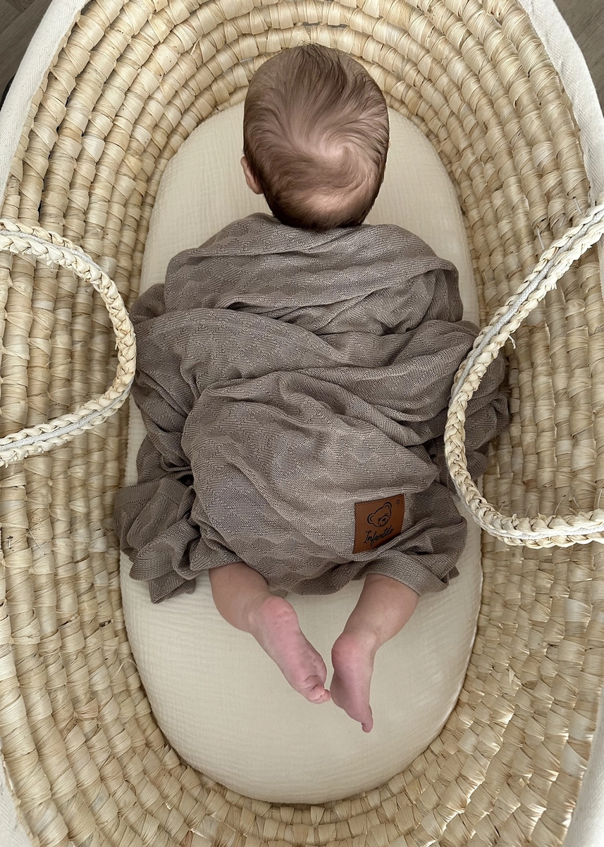 Ten kocyk to nie tylko piękny dodatek do dziecięcej wyprawki – to bezpieczna i przemyślana otulinka na każdą porę roku. Uszyty w 100% z bambusowej przędzy o wyjątkowym splocie małych rombów. Otulacz dziany jest bardzo delikatny i lekki jak chmurka. Użyty materiał posiada niezwykłe właściwości termoregulacyjne, dzięki czemu możemy z niego korzystać przez cały rok