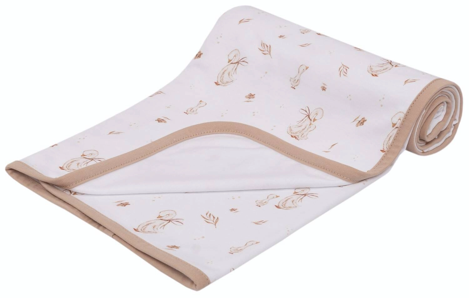 Wyjątkowo lekki i delikatny kocyk dla niemowląt, wykonany z dwóch warstw wysokogatunkowej dzianiny bawełnianej interlock (100% bawełna). Z jednej strony znajduje się dzianina drukowana, z drugiej – gładka.