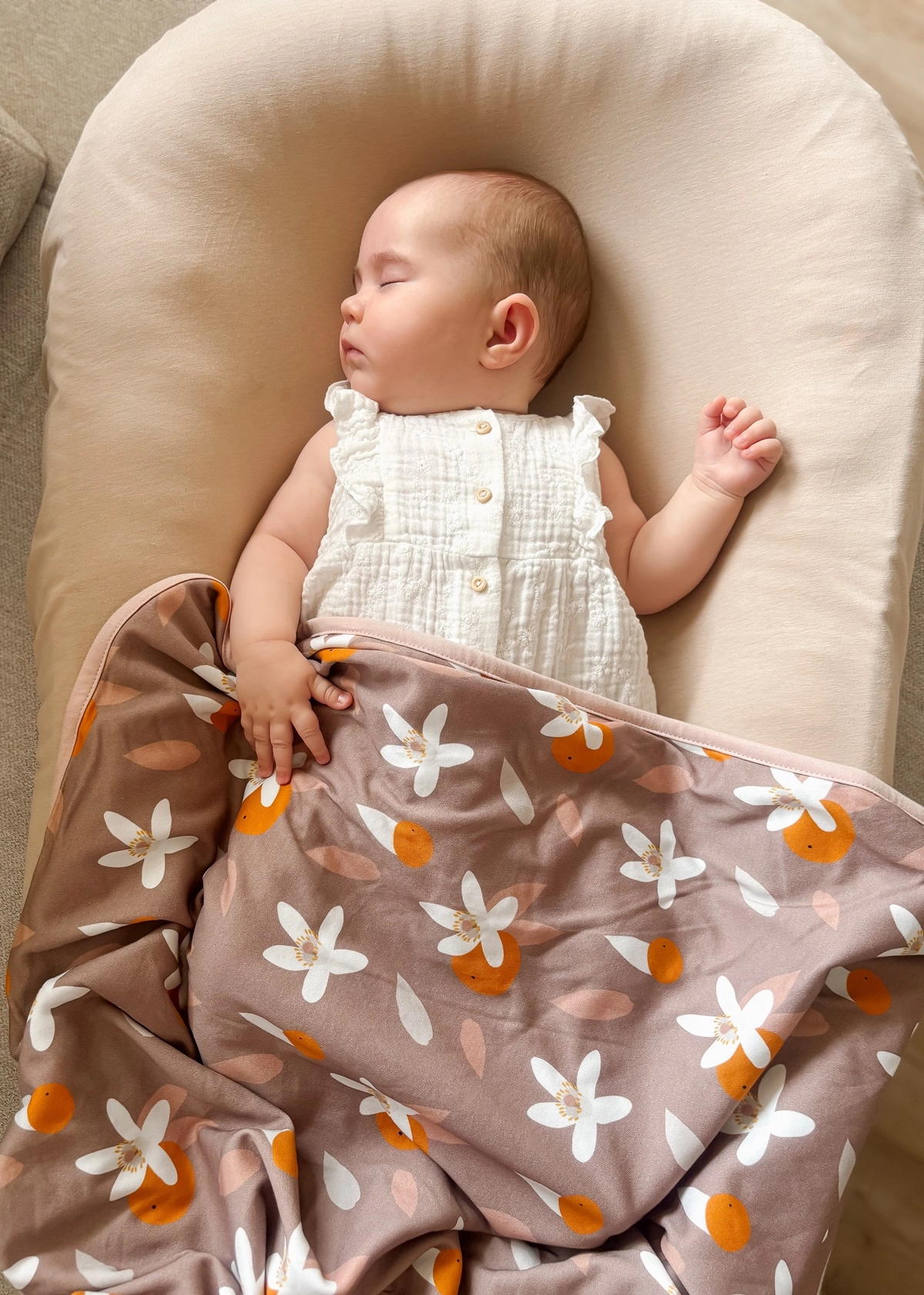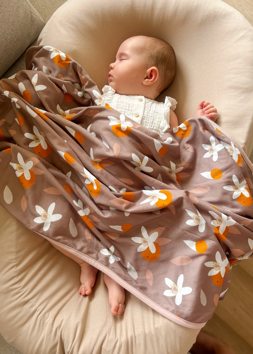 Naturalny materiał sprawia, że kocyk jest niezwykle miękki, oddychający i bezpieczny nawet dla najbardziej wrażliwej skóry dziecka.