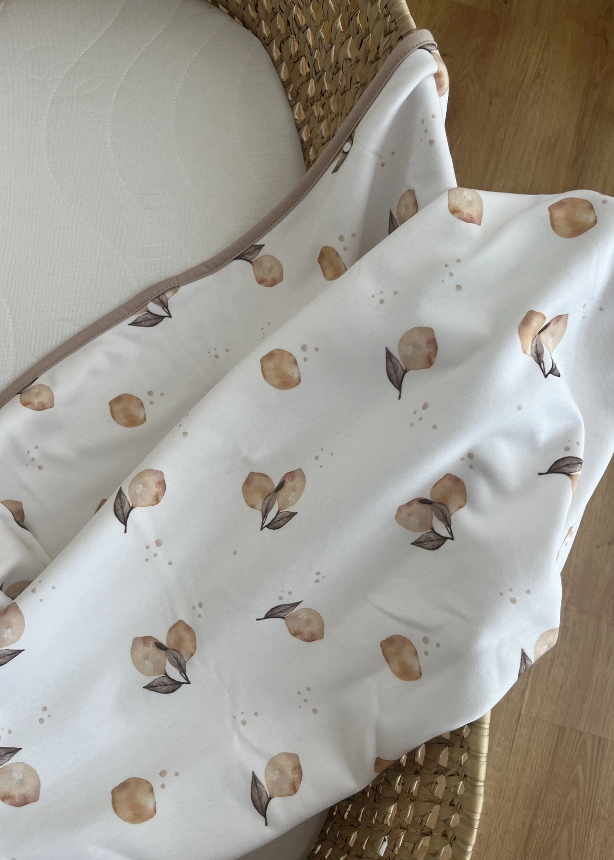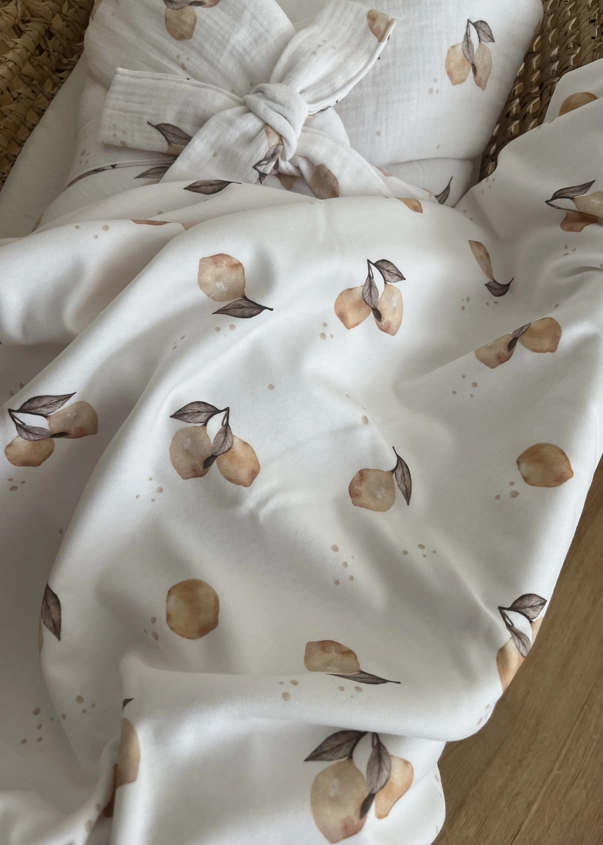 Wyjątkowo lekki i delikatny kocyk dla niemowląt, wykonany z dwóch warstw wysokogatunkowej dzianiny bawełnianej interlock (100% bawełna). Z jednej strony znajduje się dzianina drukowana, z drugiej – gładka.
