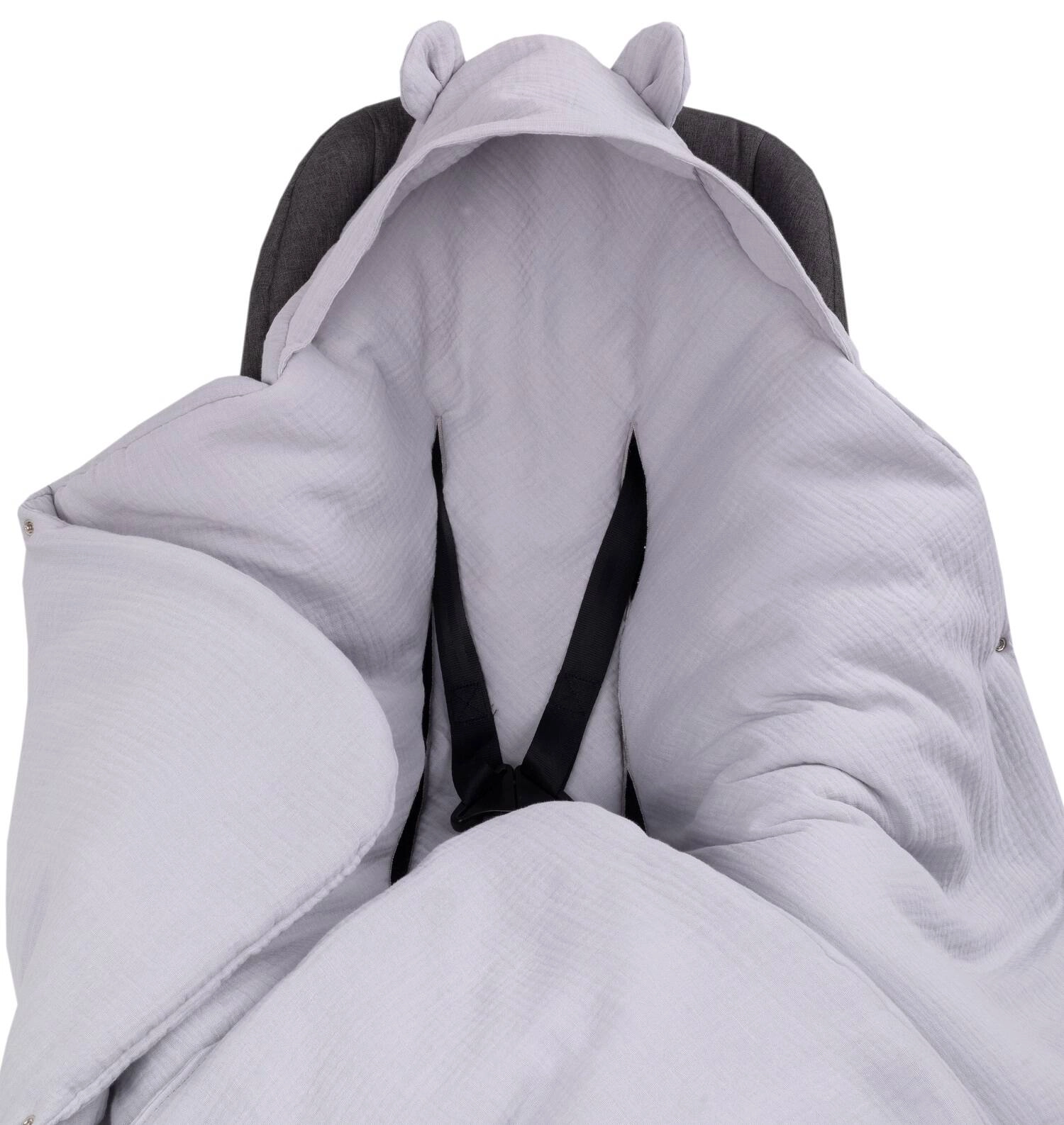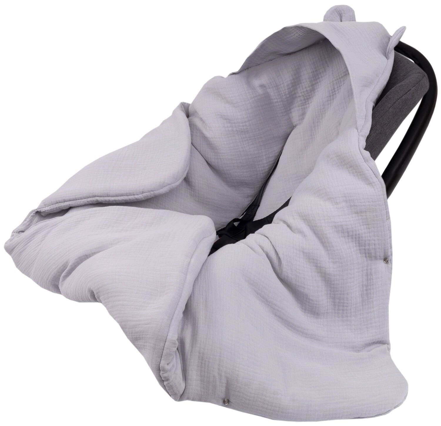 Kocyk otulacz do fotelika z kapturkiem MUŚLINOWY ocieplany