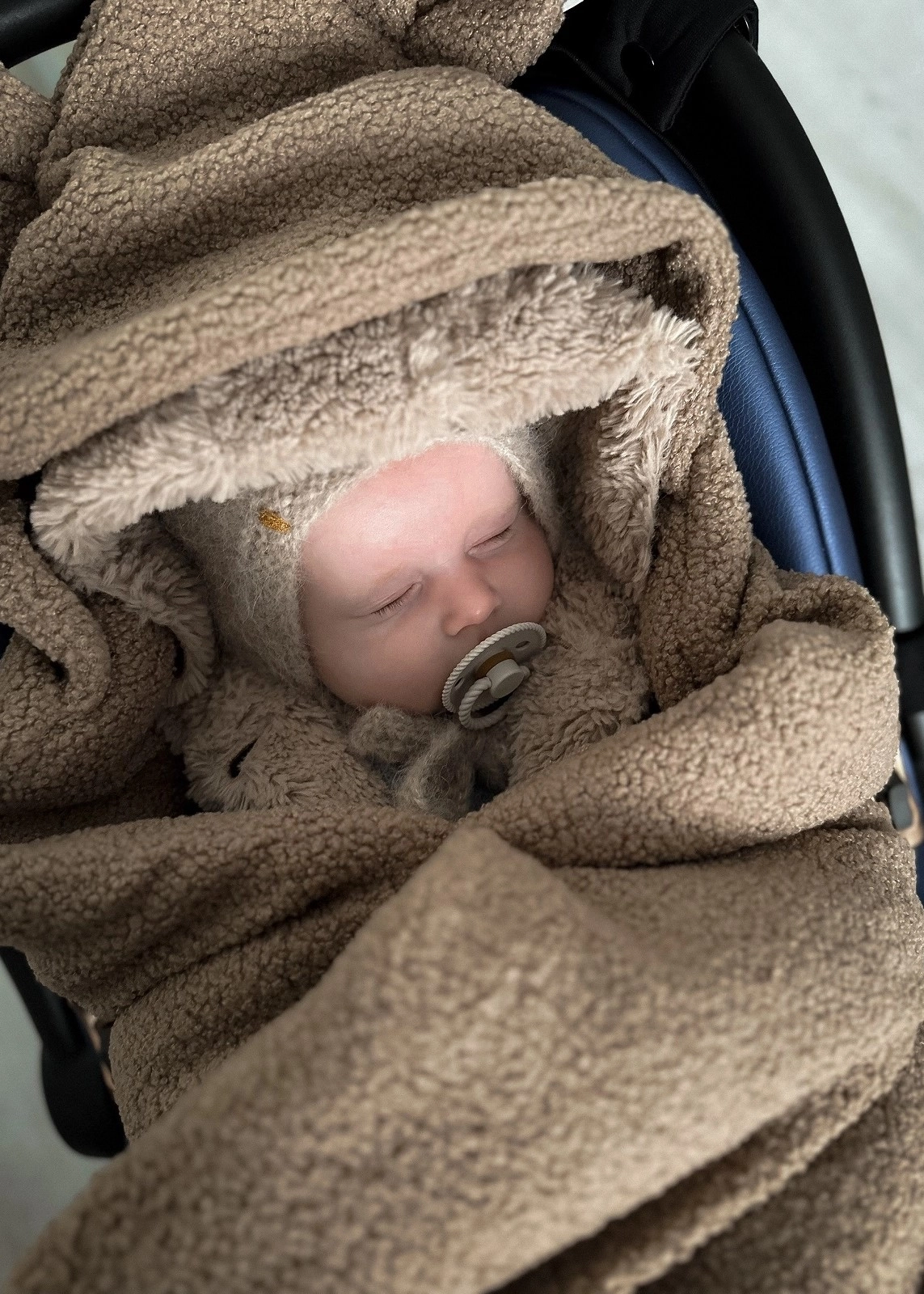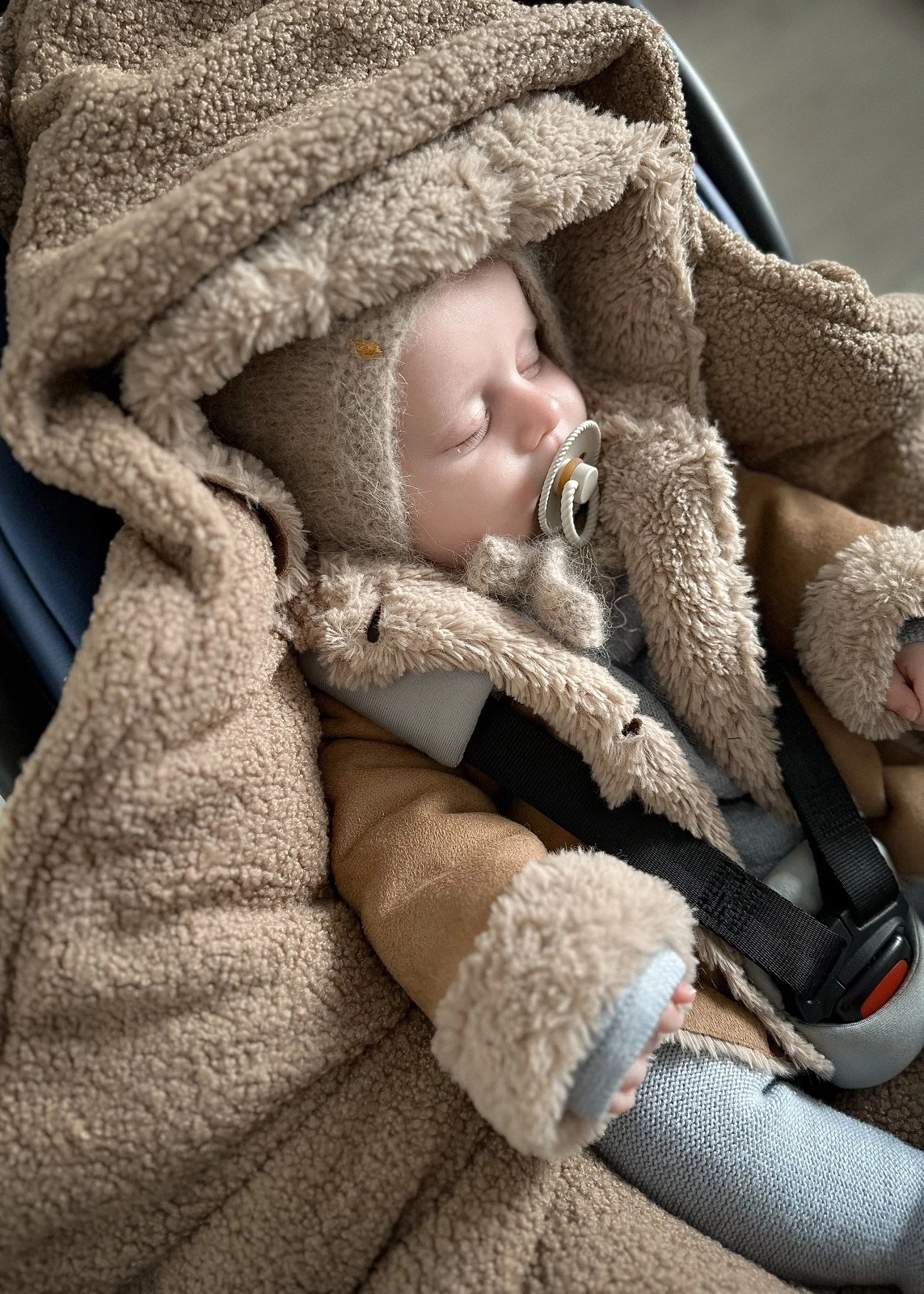 Kocyk z kapturkiem do fotelika ocieplany Baranek Boucle