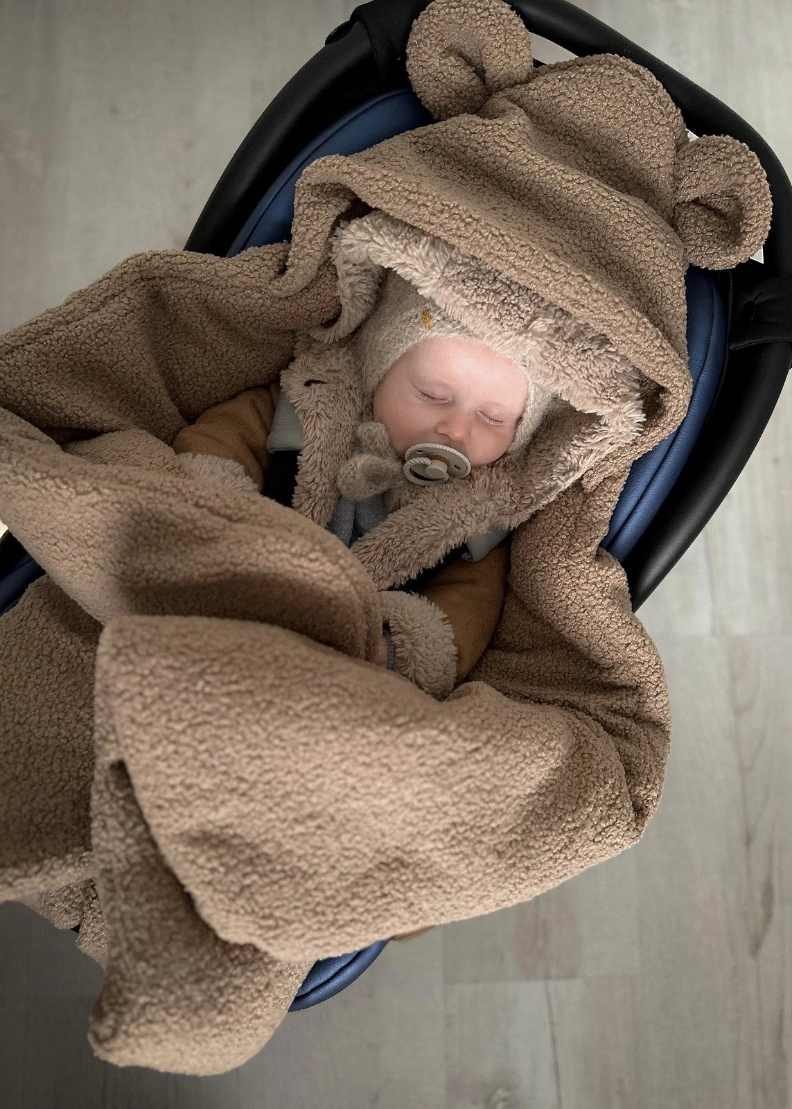 Kocyk z kapturkiem do fotelika BARANEK boucle