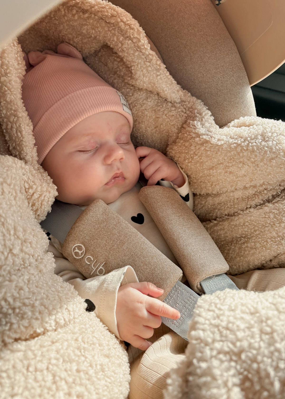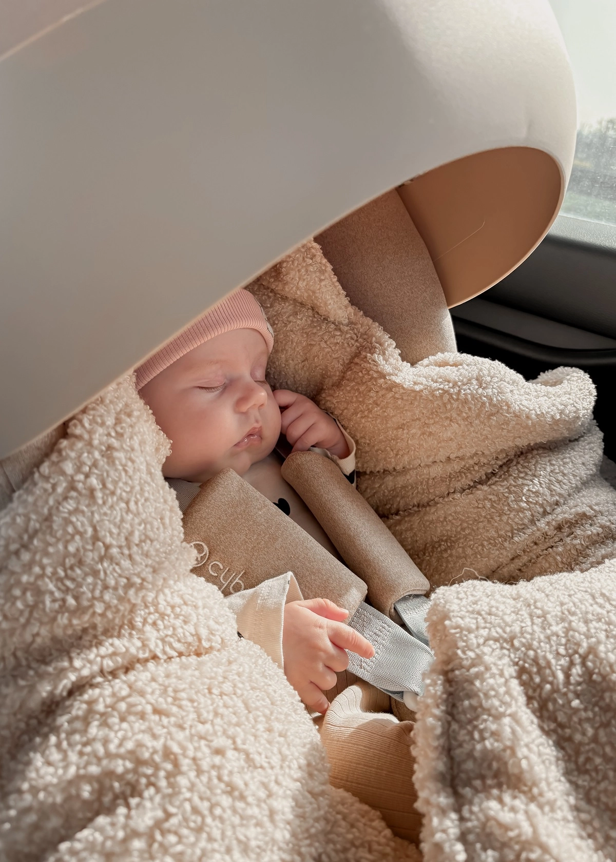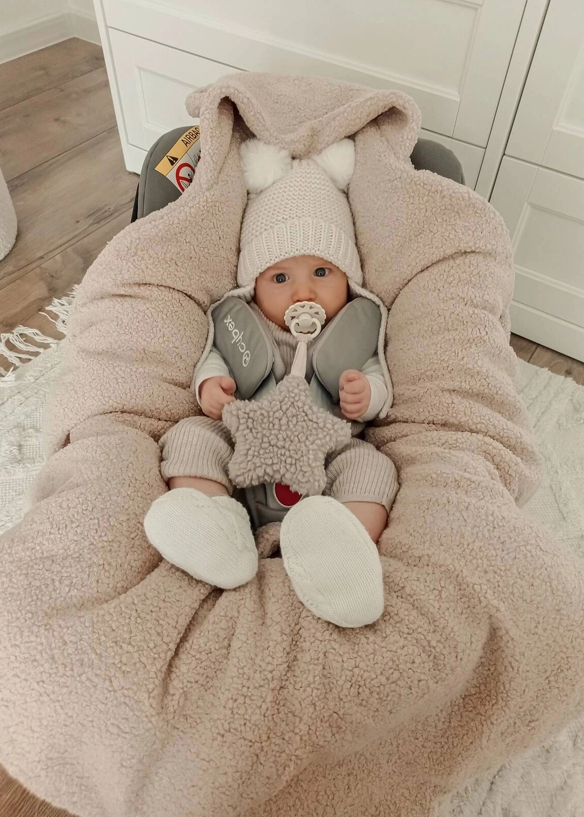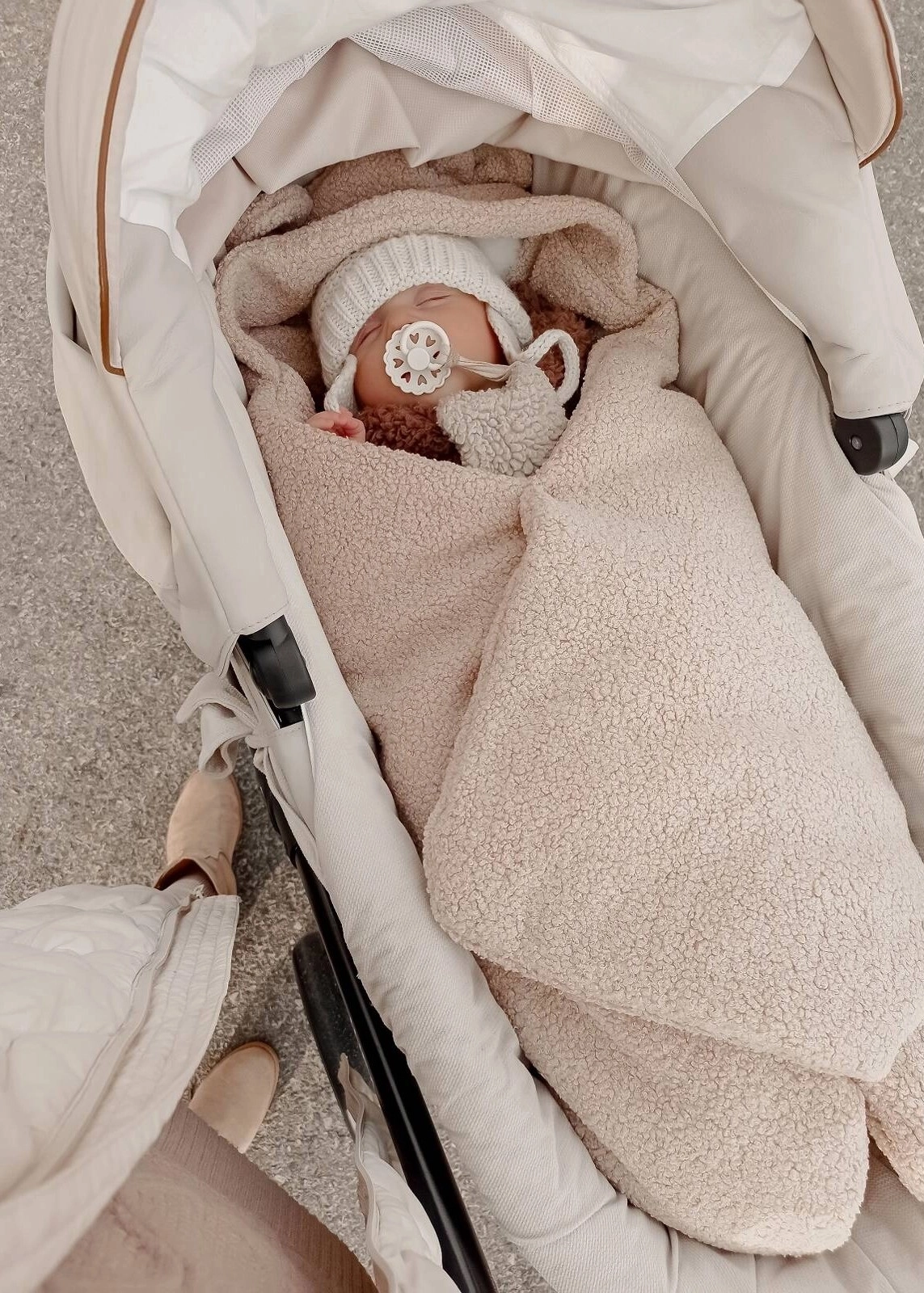 Kocyk z kapturkiem do fotelika ocieplany Baranek Boucle