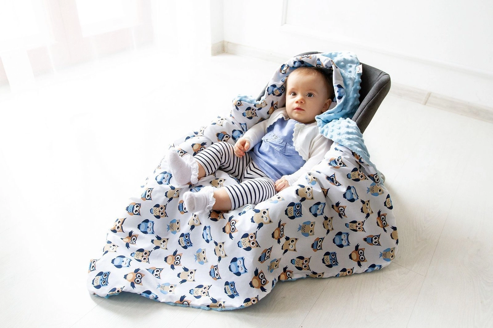 - Miękki, cieplutki kocyk z kapturkiem idealnie pasuje do nosidełka lub fotelika samochodowego.(doskonały na jesienną i zimową porę)