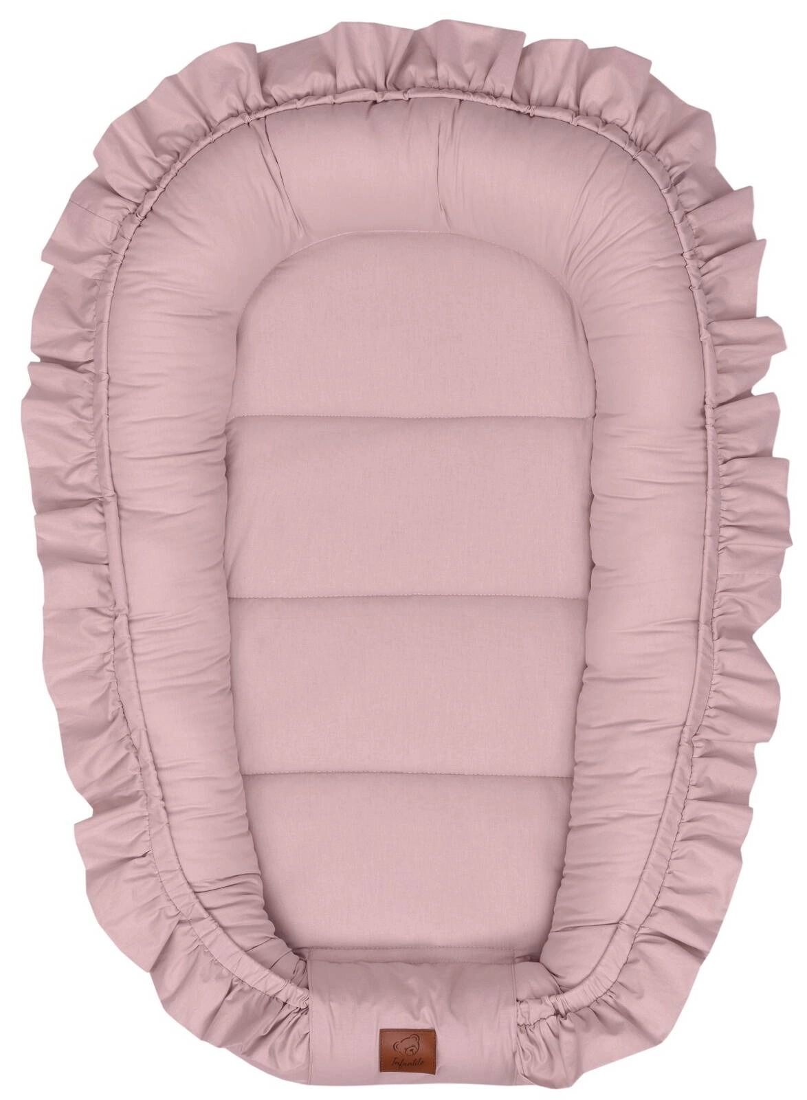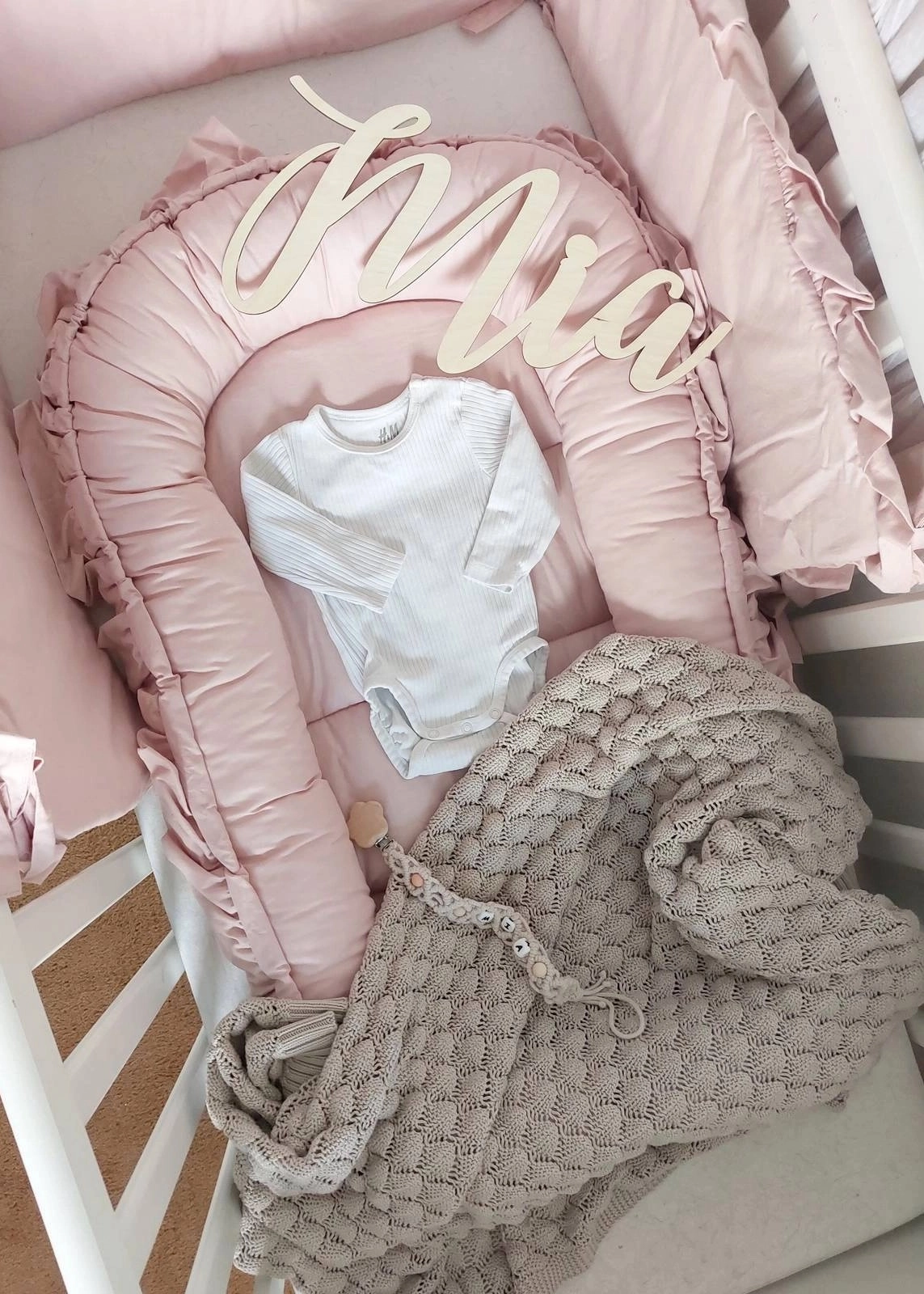 KOKON NIEMOWLĘCY wykonany został ze 100% bawełny oraz obszyty dekoracyjną falbanką w kolorze kokonu.