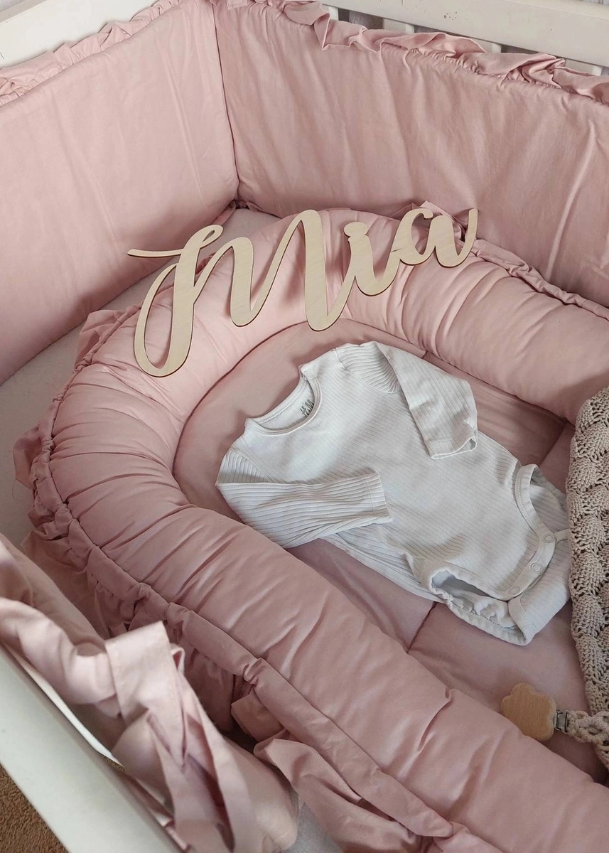 Niezwykle elegancki materiał sprawia, że kokon pełni również funkcję ozdobną pokoiku dziecięcego. Falbanka doszyta do kokonu nadaje mu jeszcze więcej uroku.