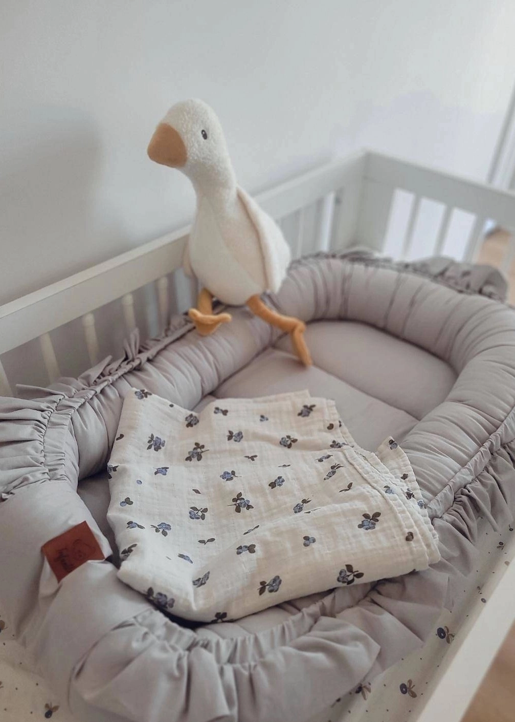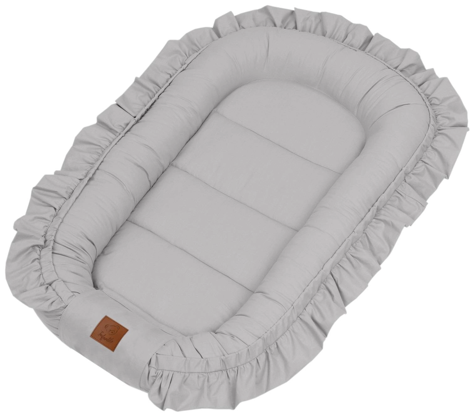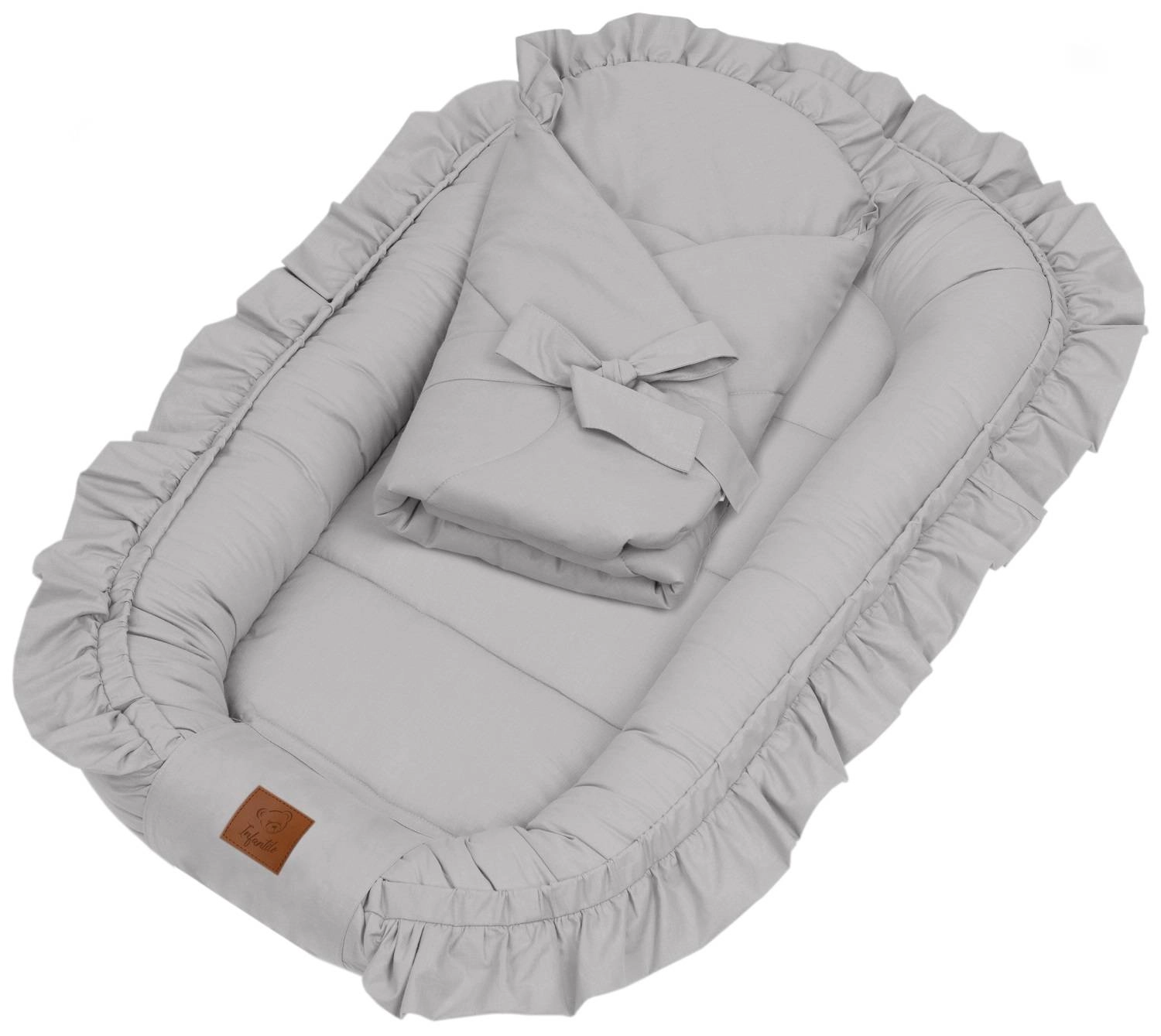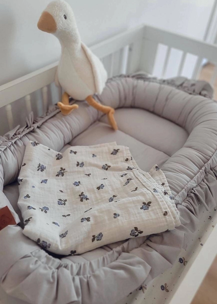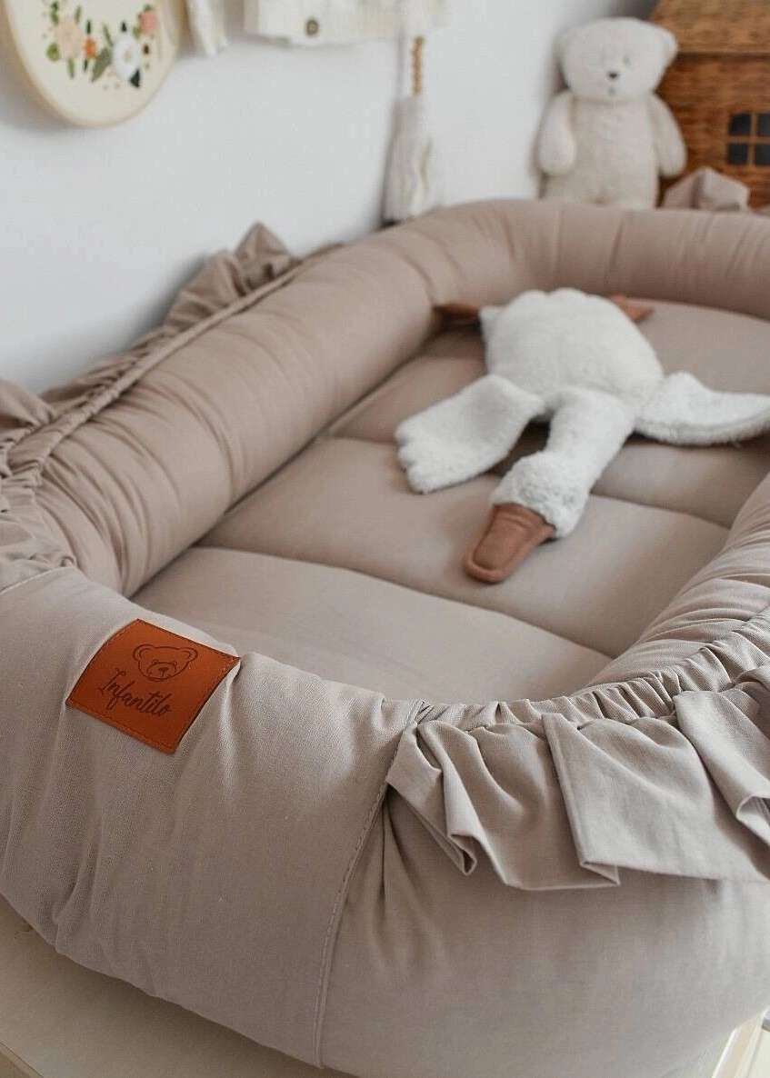 KOKON NIEMOWLĘCY wykonany został ze 100% bawełny oraz obszyty dekoracyjną falbanką w kolorze kokonu.