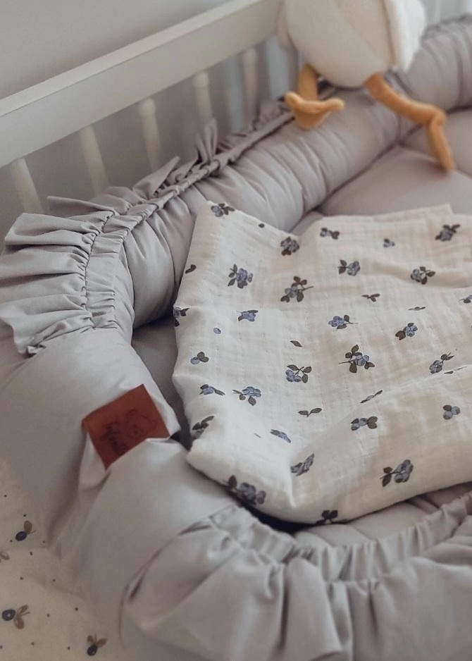 Niezwykle elegancki materiał sprawia, że kokon pełni również funkcję ozdobną pokoiku dziecięcego. Falbanka doszyta do kokonu nadaje mu jeszcze więcej uroku.