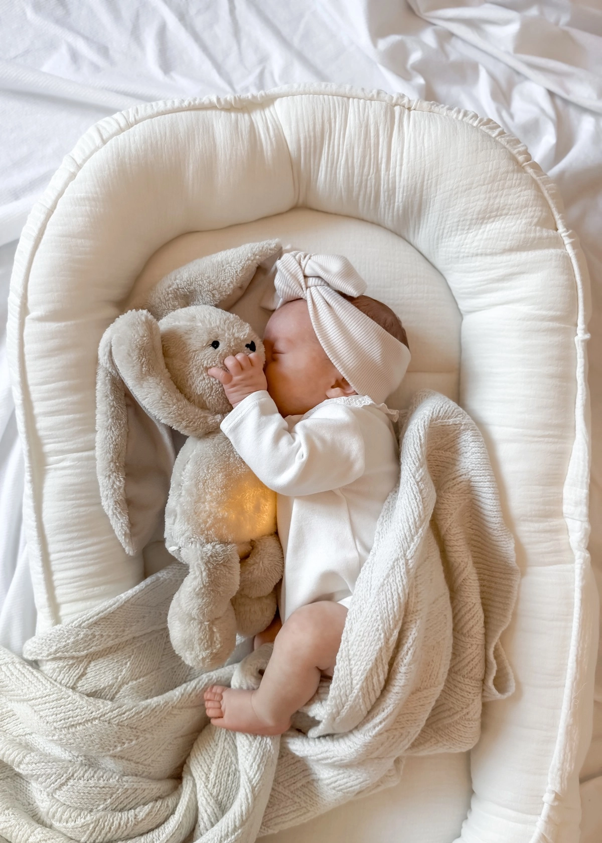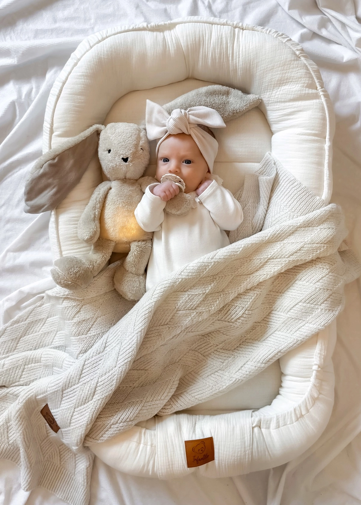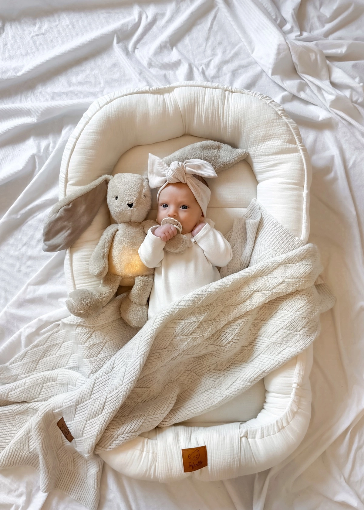 • Zapewnia poczucie bezpieczeństwa – kokon miękko otula dziecko, ogranicza przestrzeń i przypomina warunki panujące w brzuchu mamy, co sprzyja spokojnemu snu.