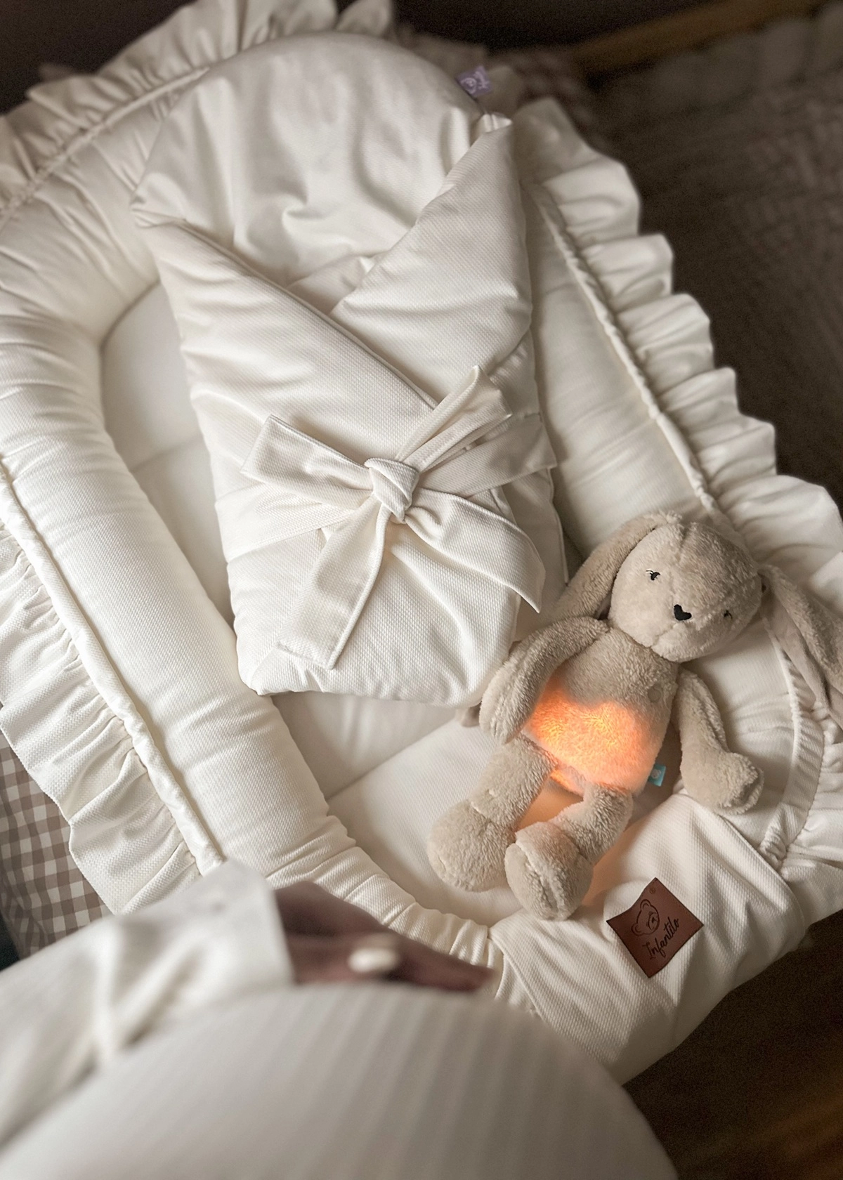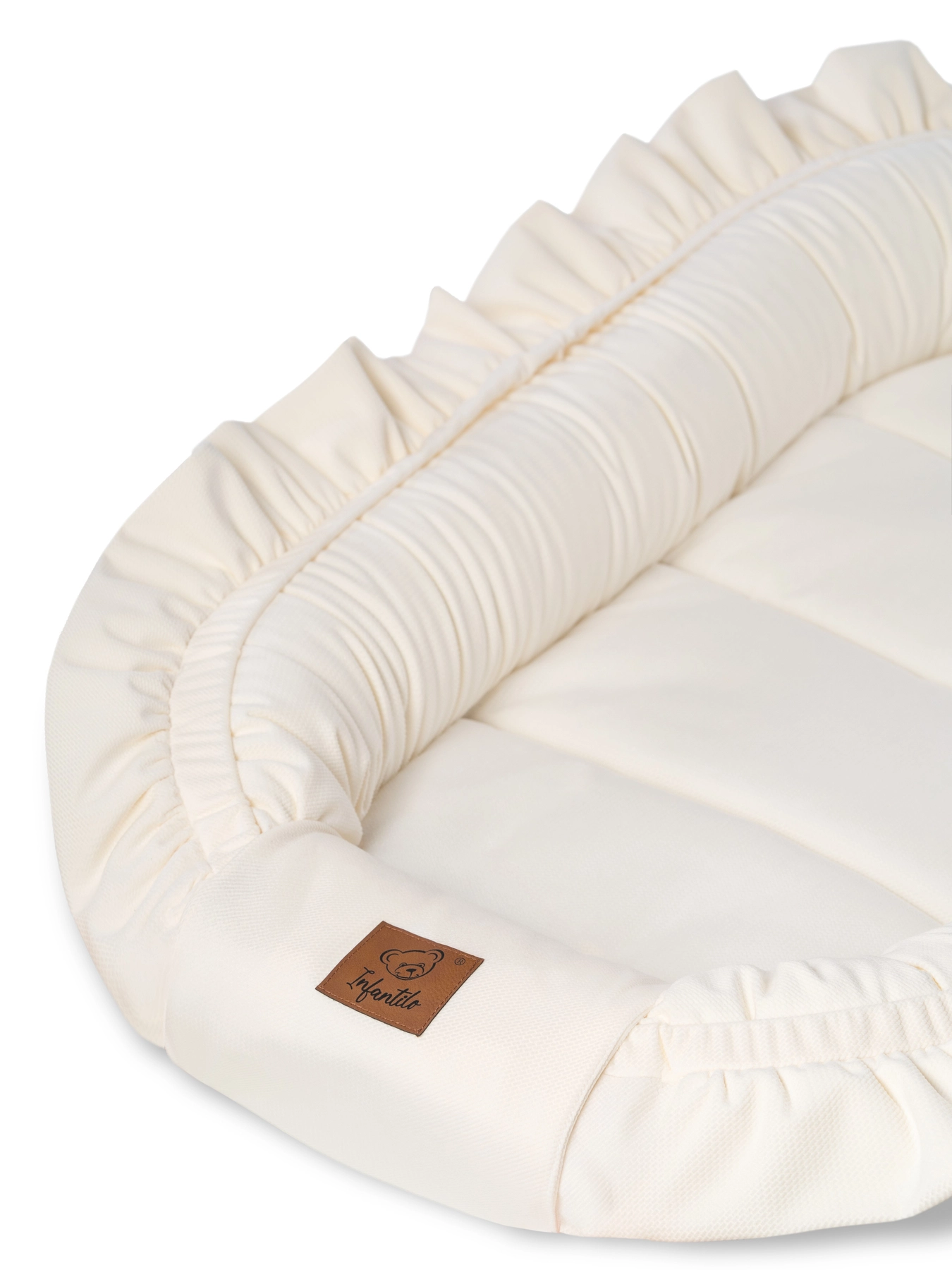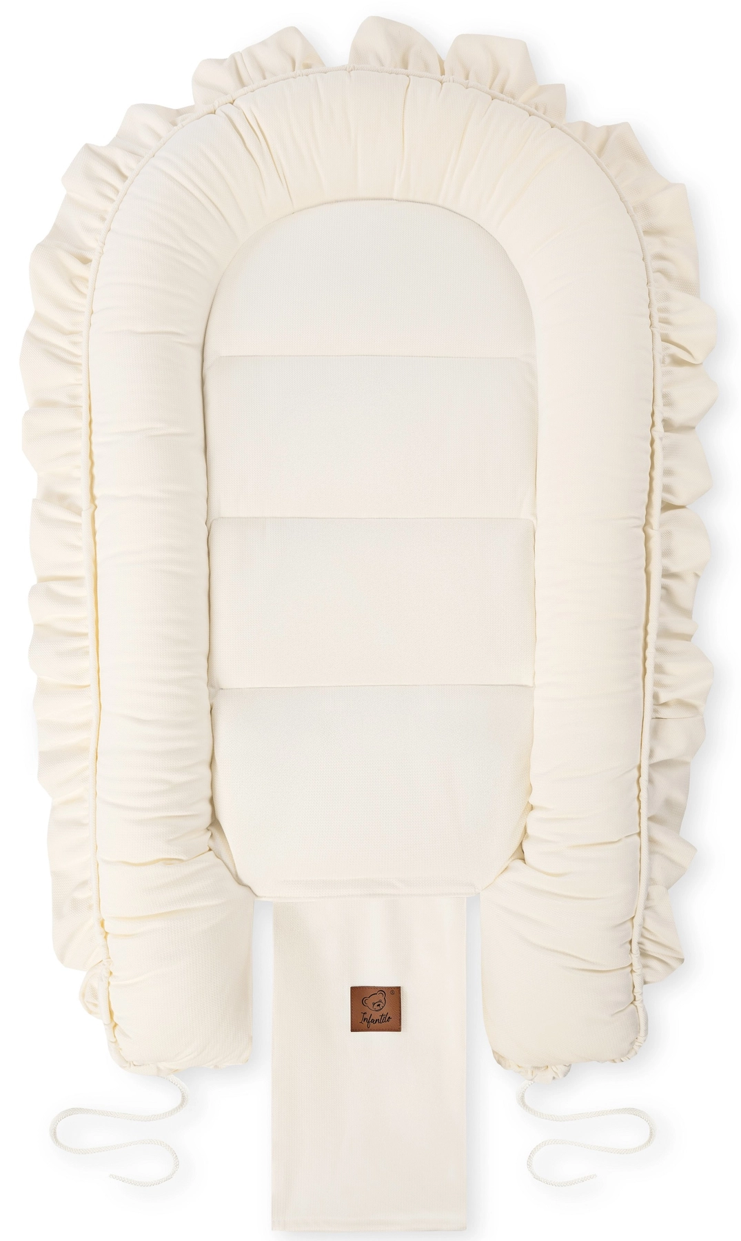 Kokon zapewnia dziecku przytulną, ograniczoną przestrzeń, przypominającą warunki z brzuszka mamy – idealne dla noworodków i niemowląt, które lubią być tulone. Dzięki dekoracyjnej falbance stanowi również uroczy element wystroju dziecięcego pokoju.