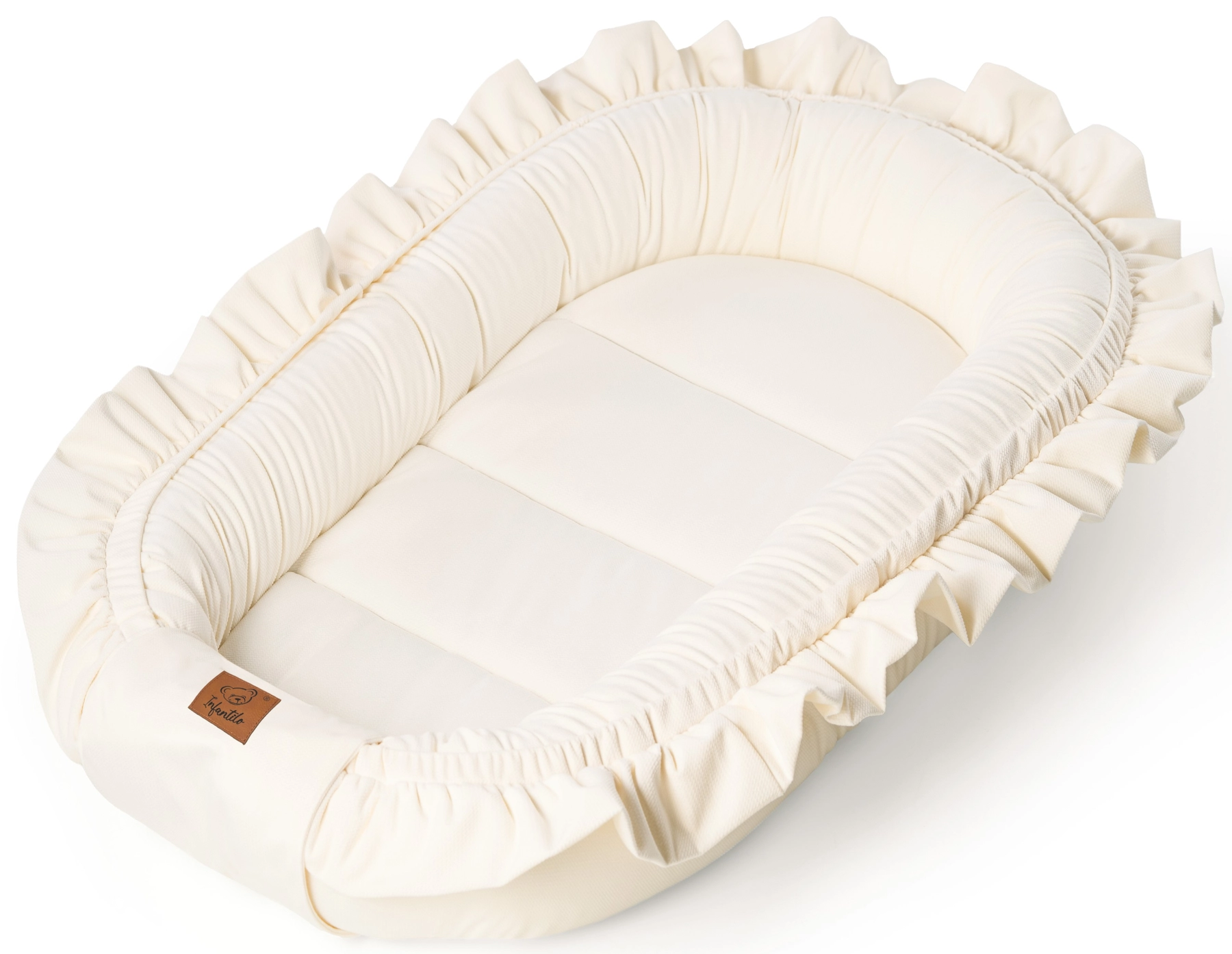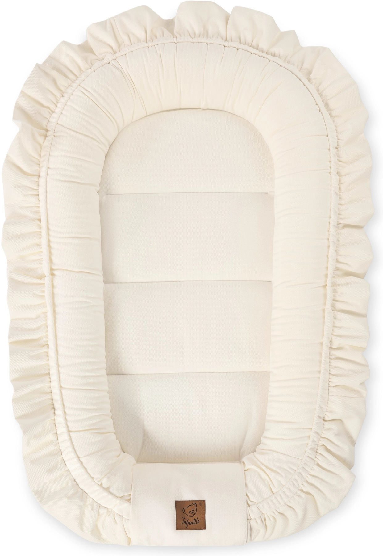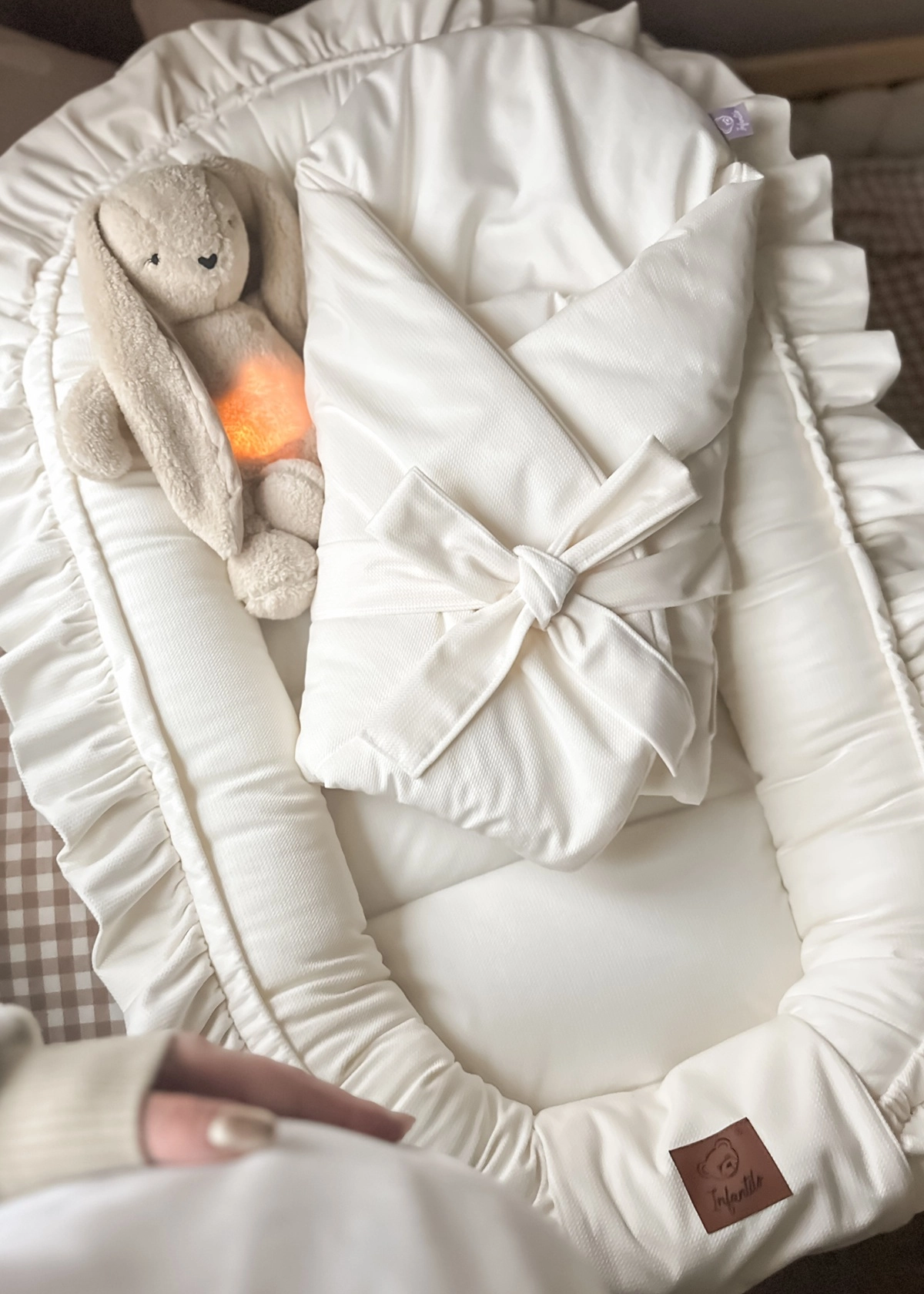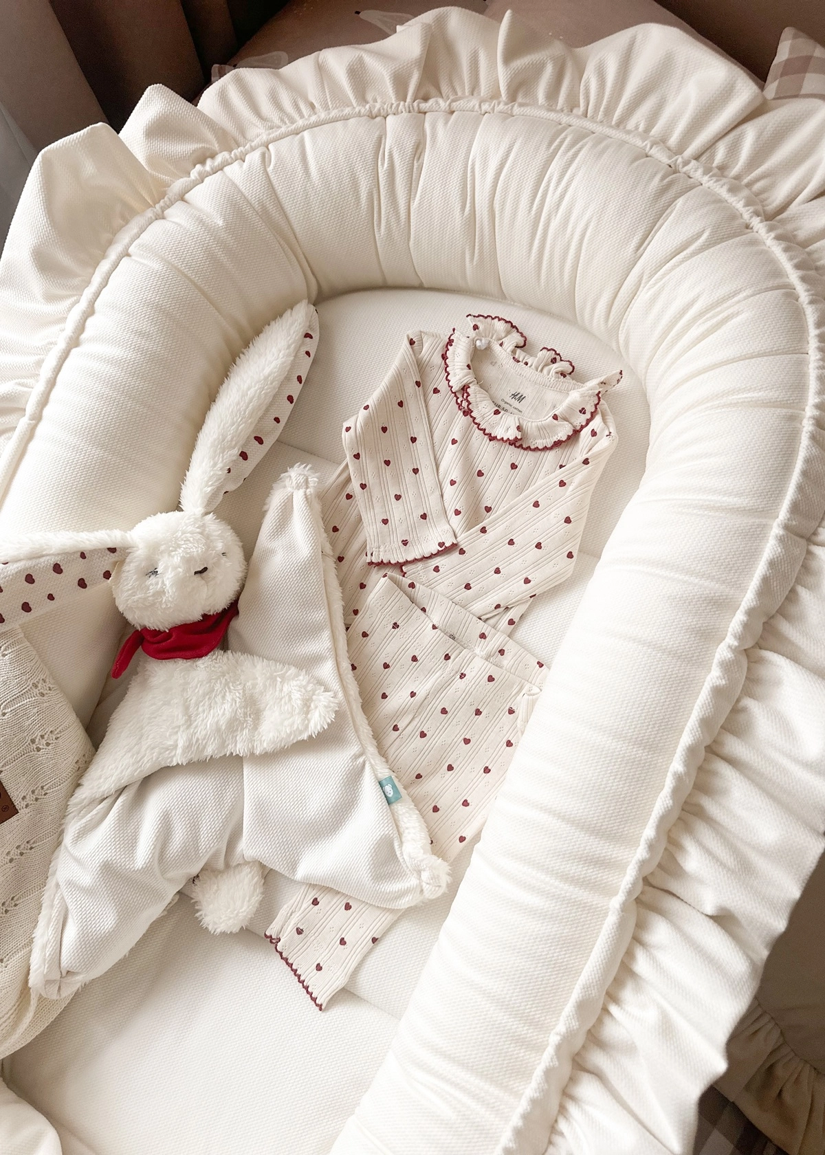 Kokon zapewnia dziecku przytulną, ograniczoną przestrzeń, przypominającą warunki z brzuszka mamy – idealne dla noworodków i niemowląt, które lubią być tulone. Dzięki dekoracyjnej falbance stanowi również uroczy element wystroju dziecięcego pokoju.