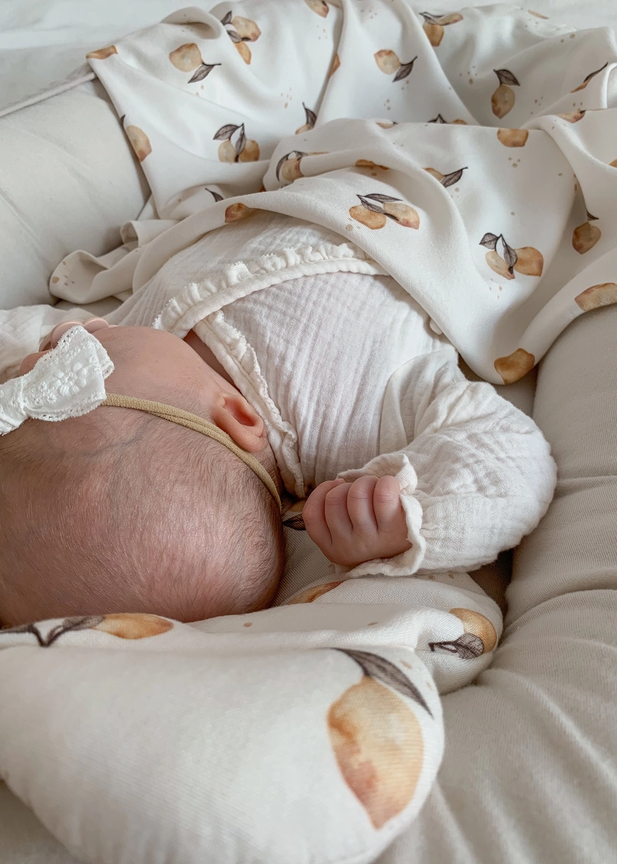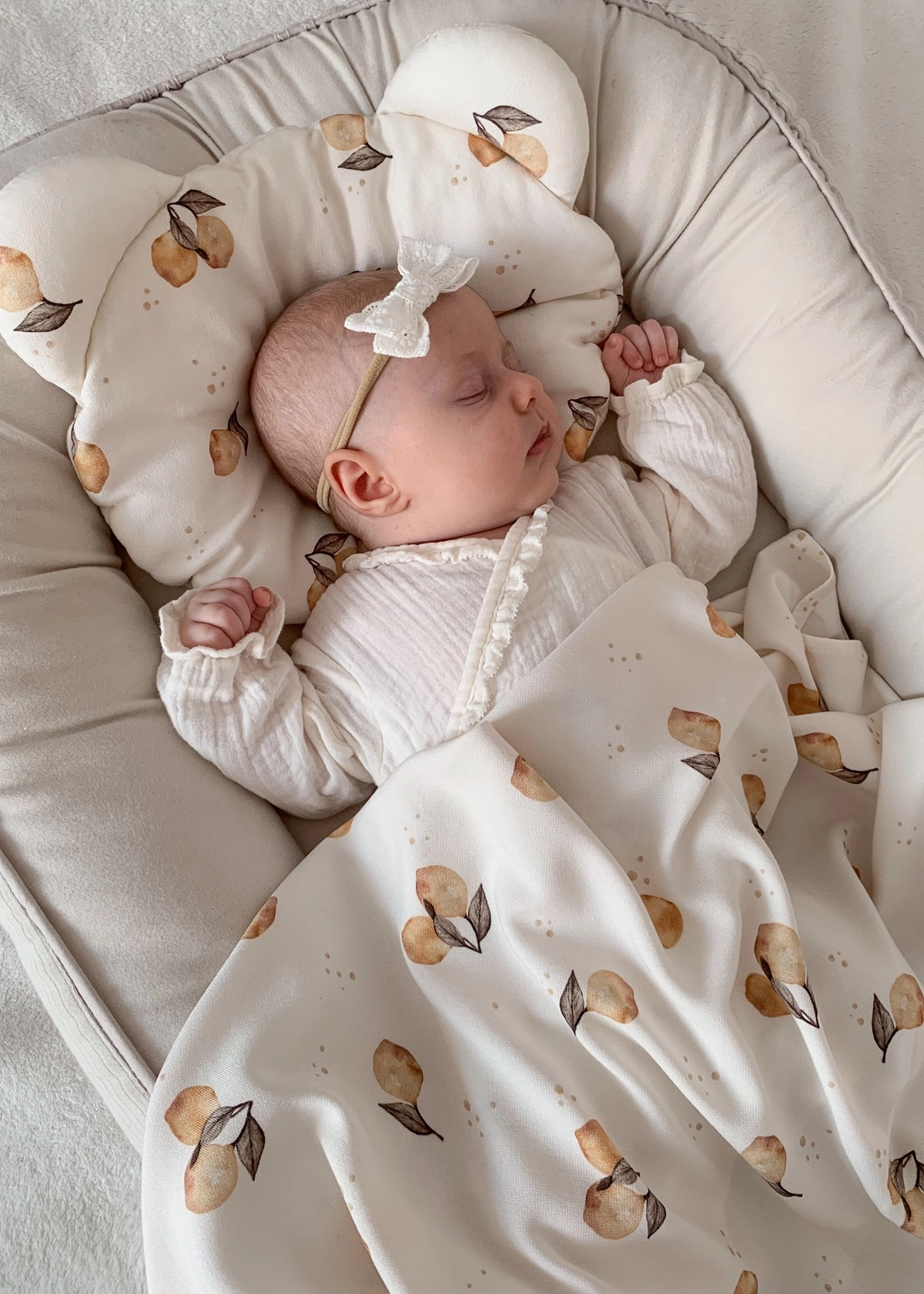 W zestawie oprócz poduszki znajduje się jednowarstwowy kocyk, idealnie nadający się do okrycia dziecka w upalne dni. Zapewnia bowiem ochronę przed promieniami słońca czy wiatrem nie powodując przegrzania.