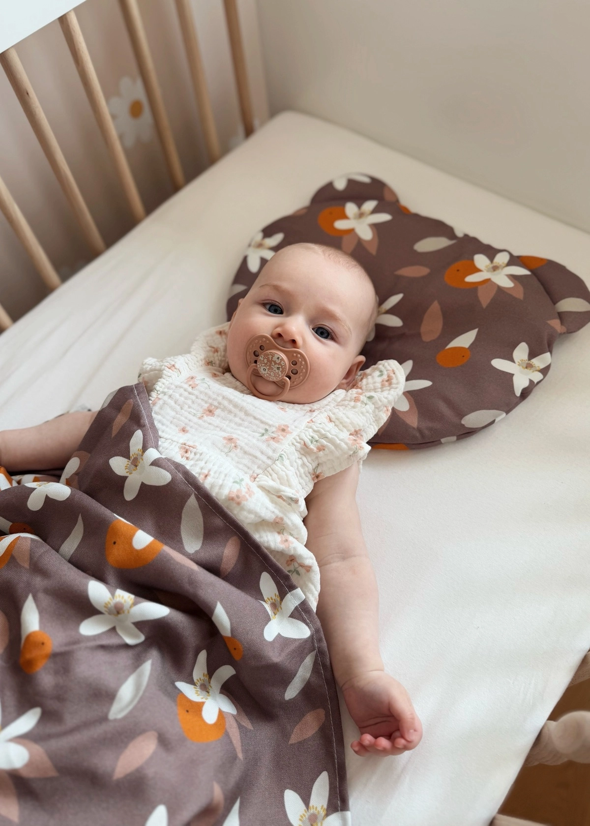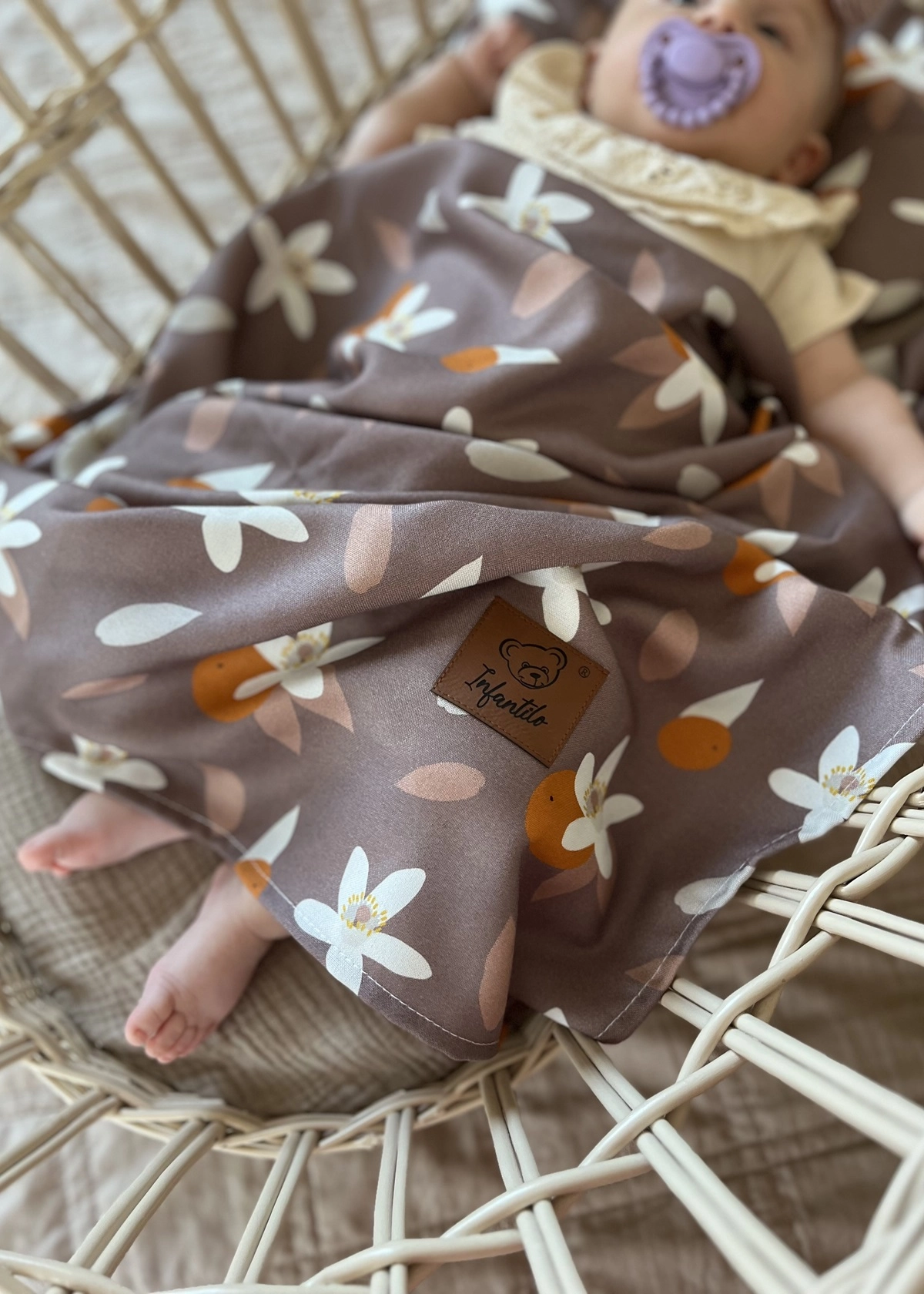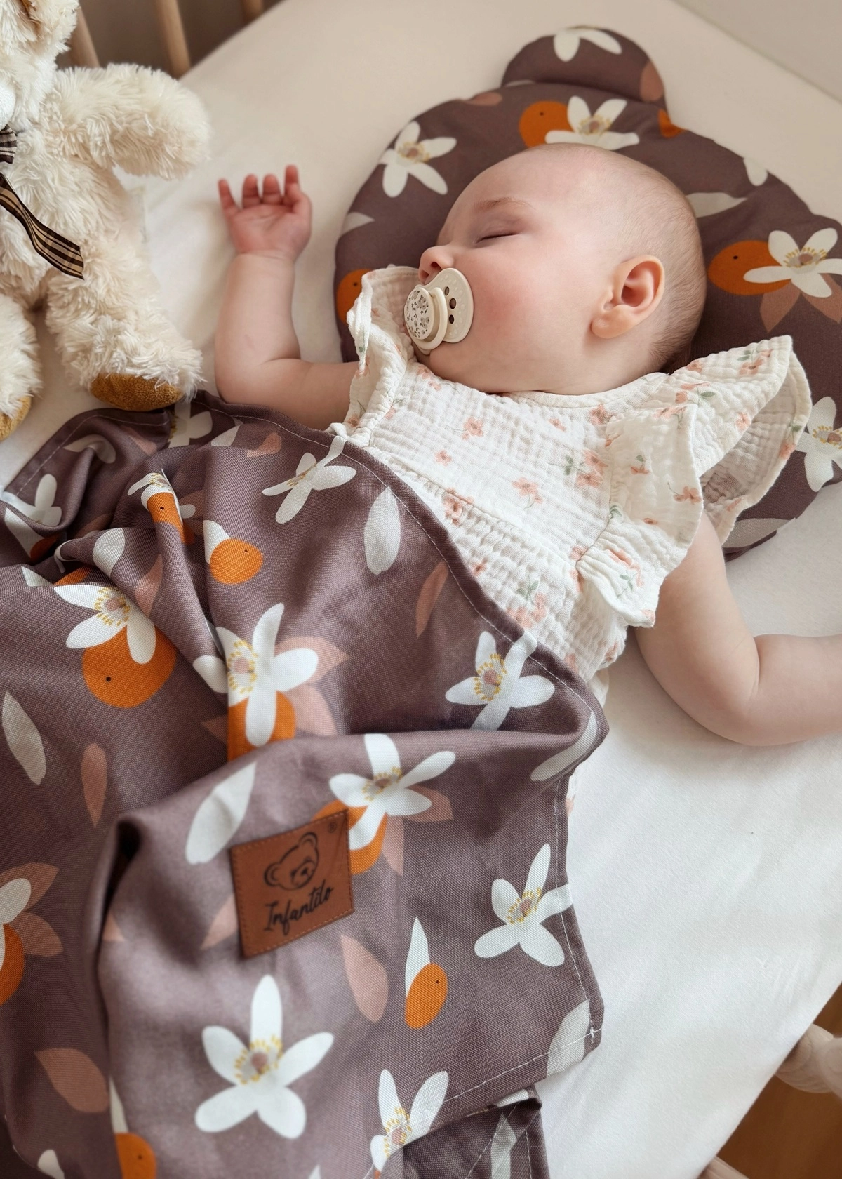W zestawie oprócz poduszki znajduje się jednowarstwowy kocyk, idealnie nadający się do okrycia dziecka w upalne dni. Zapewnia bowiem ochronę przed promieniami słońca czy wiatrem nie powodując przegrzania.