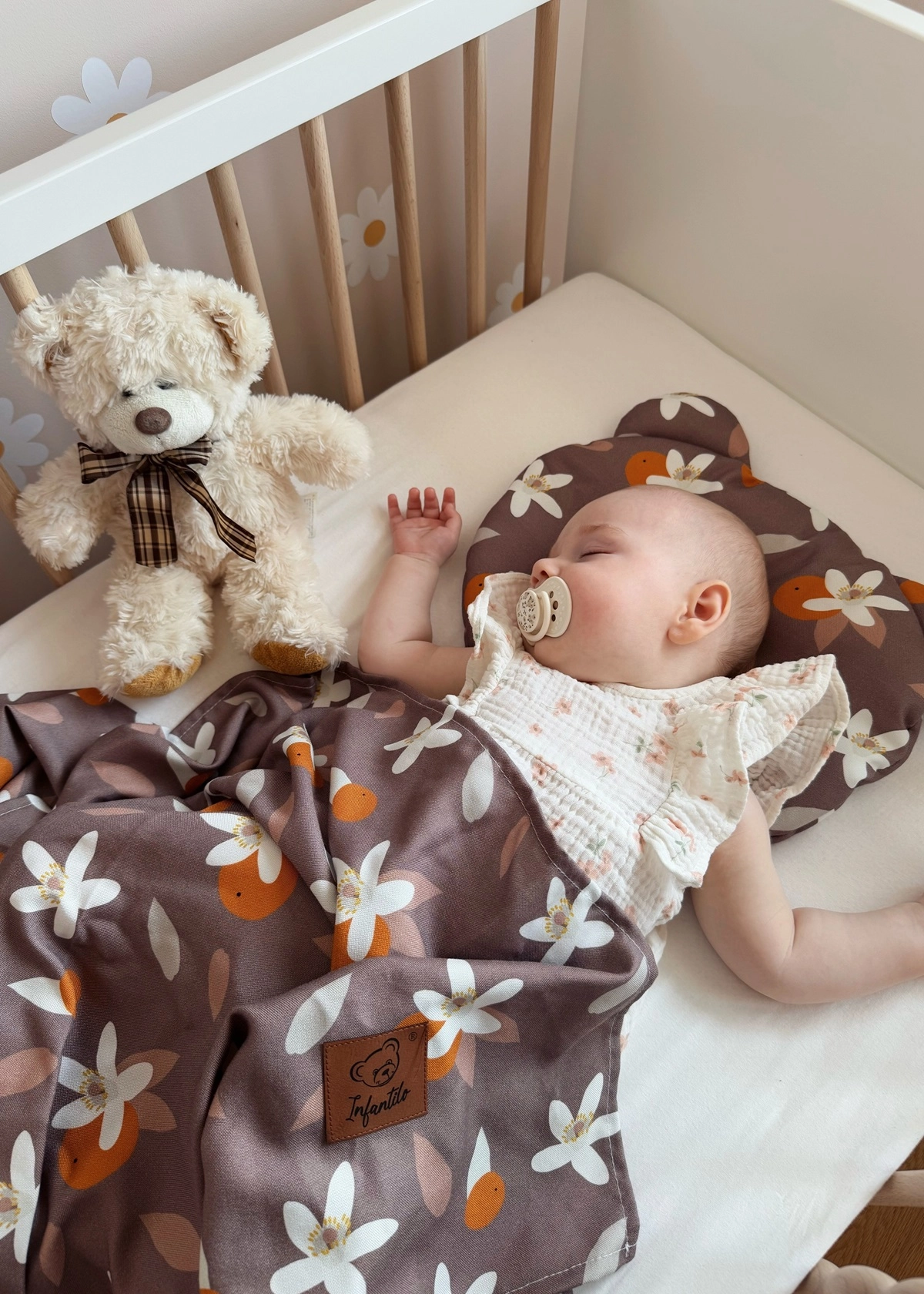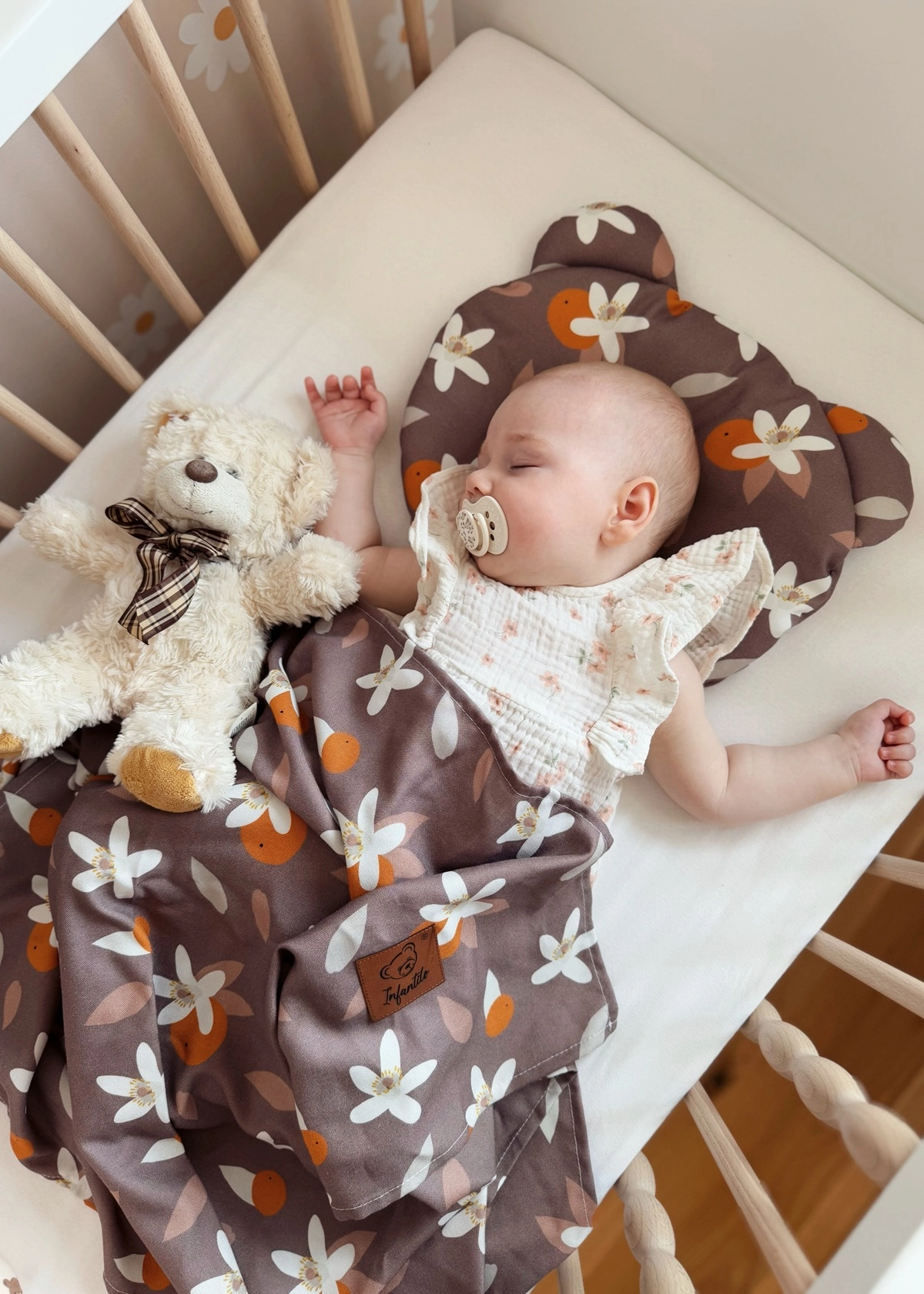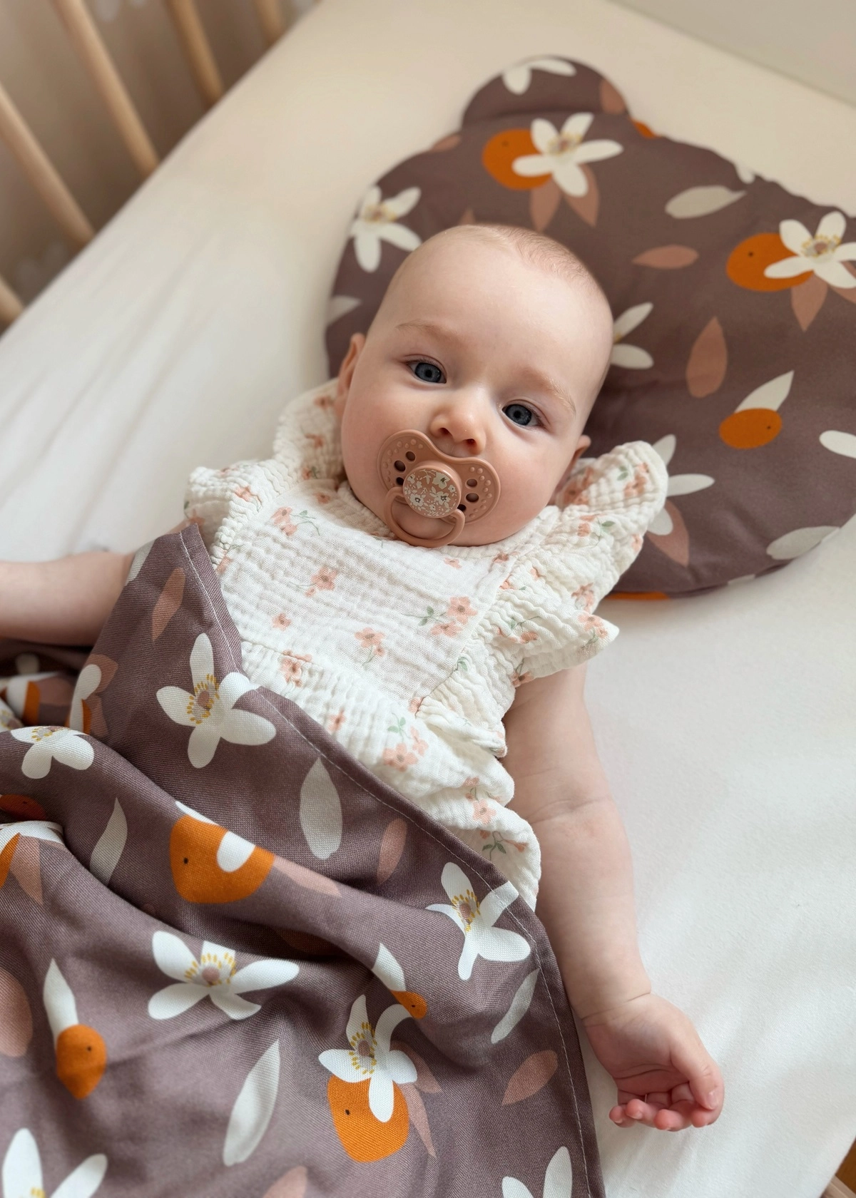 W zestawie oprócz poduszki znajduje się jednowarstwowy kocyk, idealnie nadający się do okrycia dziecka w upalne dni. Zapewnia bowiem ochronę przed promieniami słońca czy wiatrem nie powodując przegrzania.