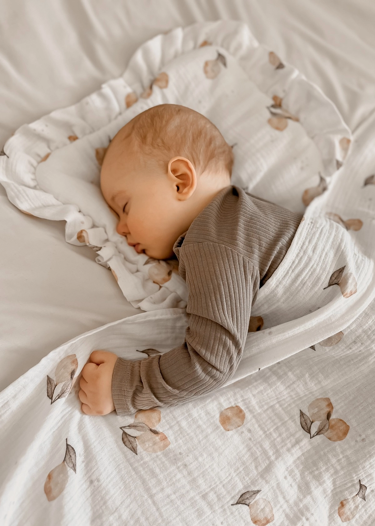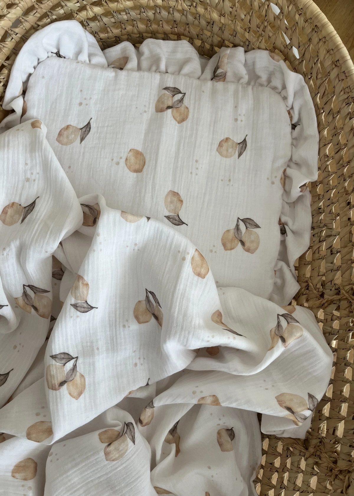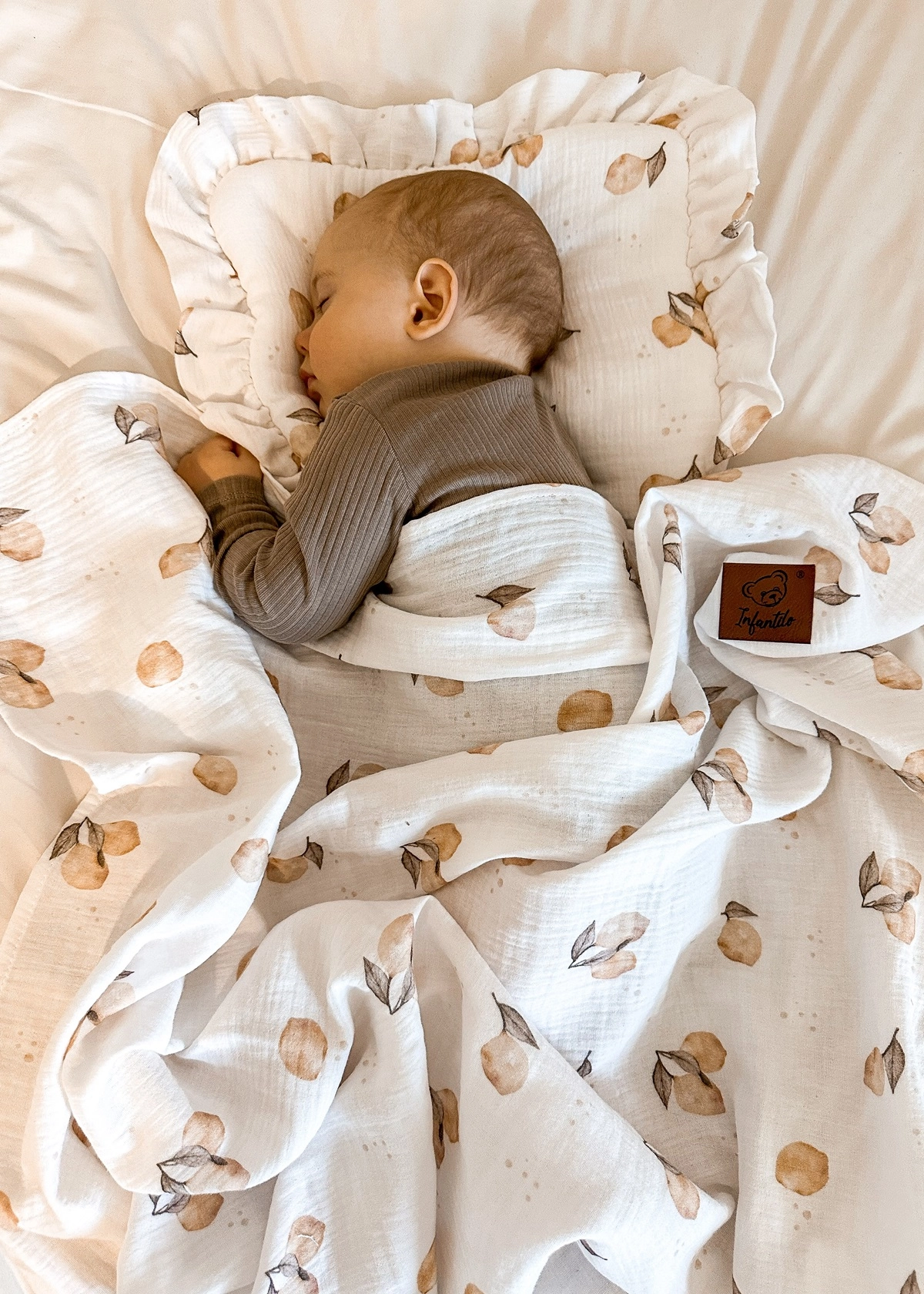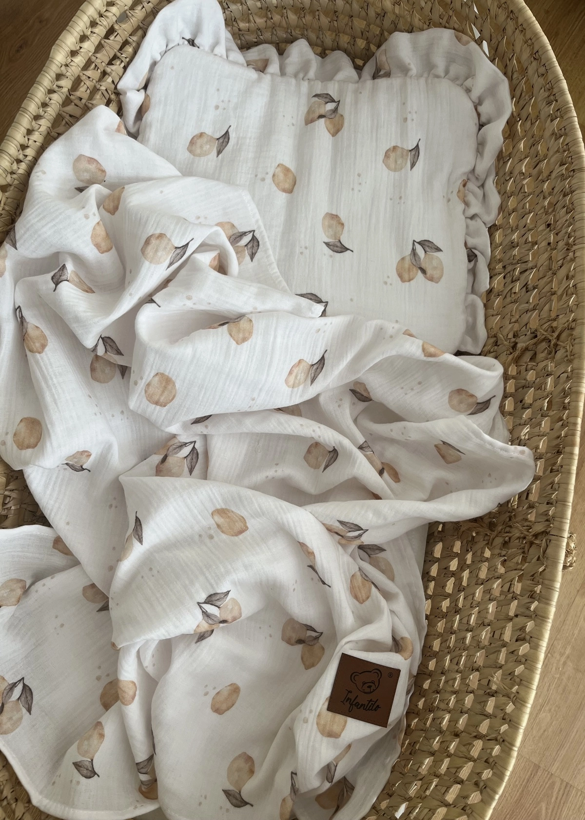 Komplet letni poduszka z falbanką i otulacz MUŚLIN