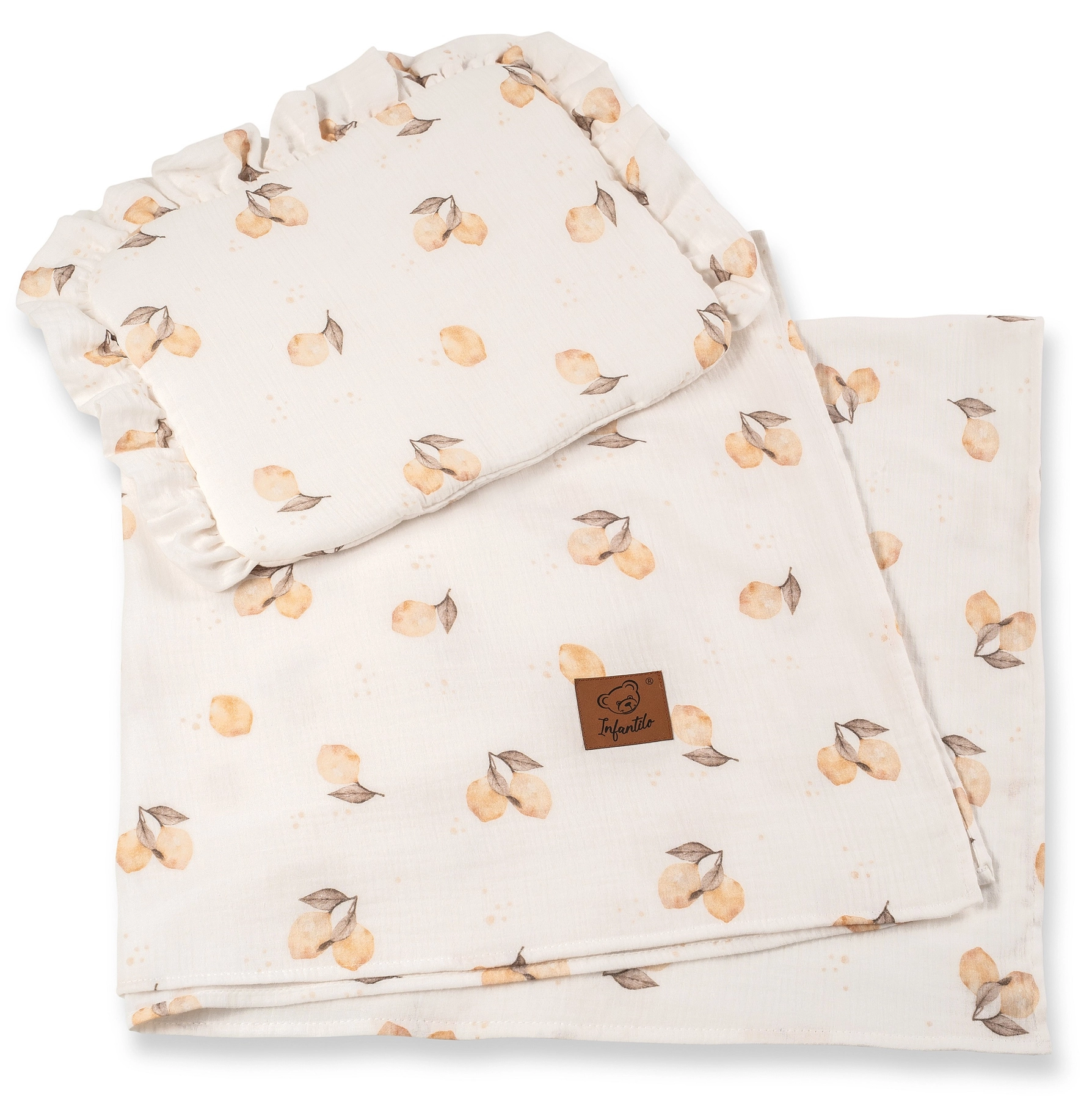 Komplet muślinowy dla niemowląt – poduszka i otulacz z bawełny double gaze