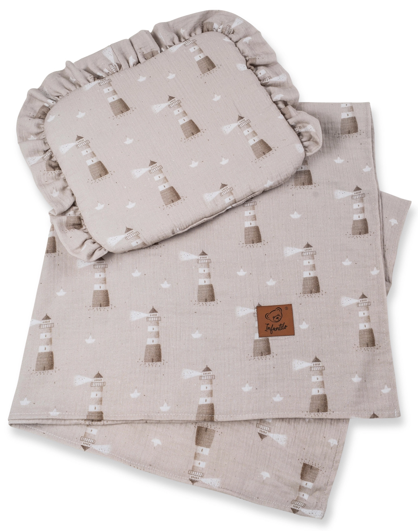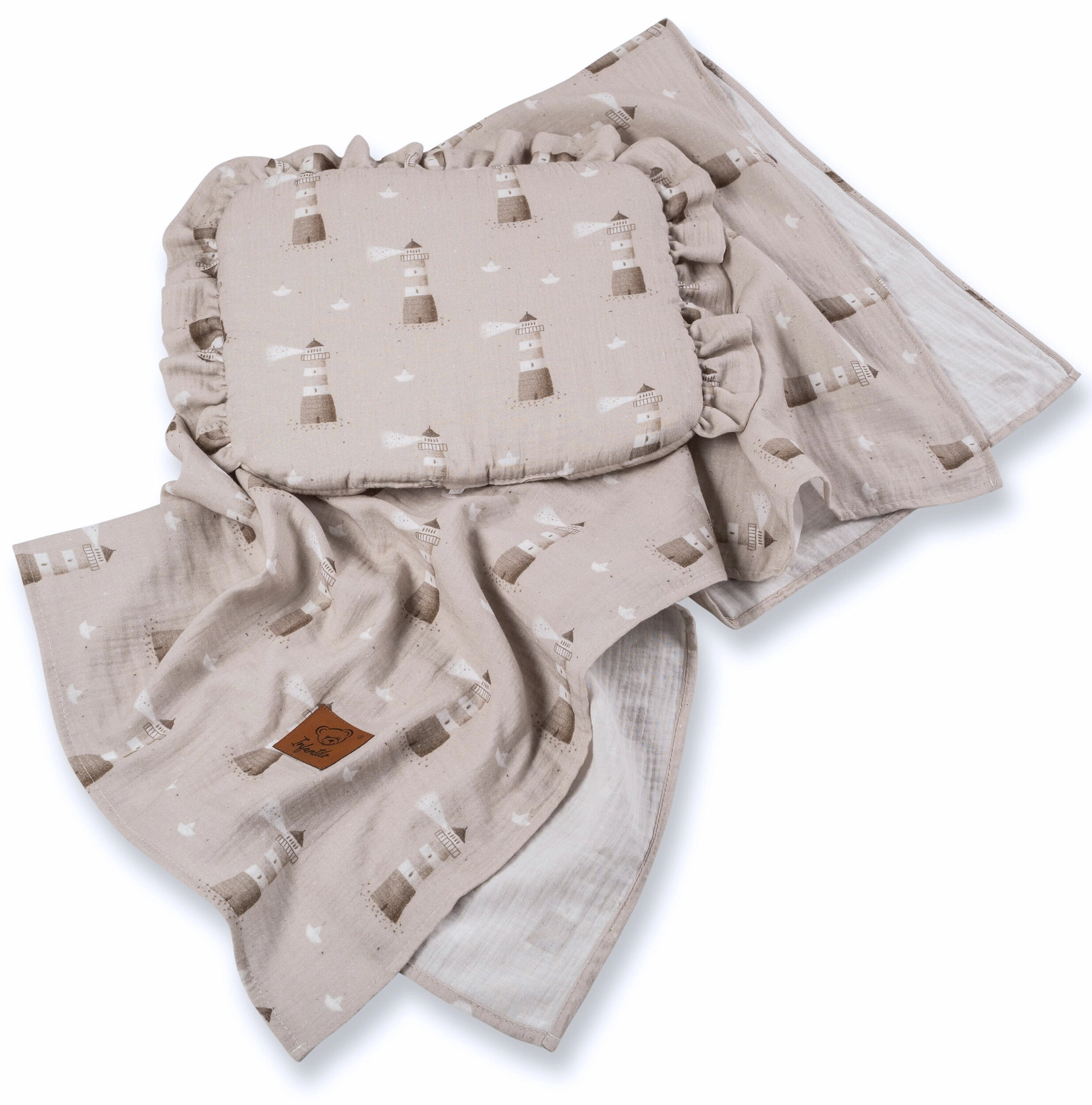 Komplet muślinowy dla niemowląt – poduszka i otulacz z bawełny double gaze