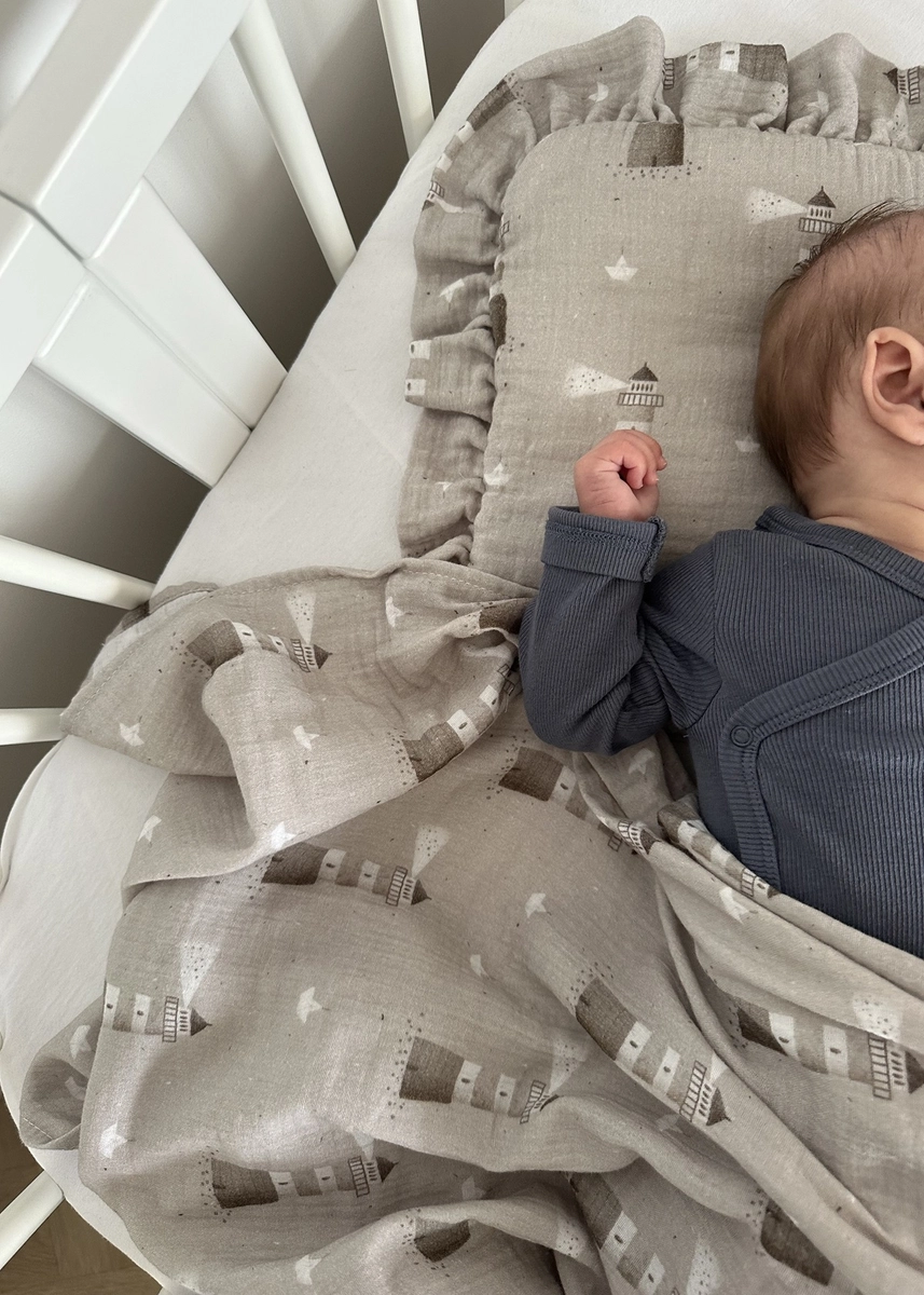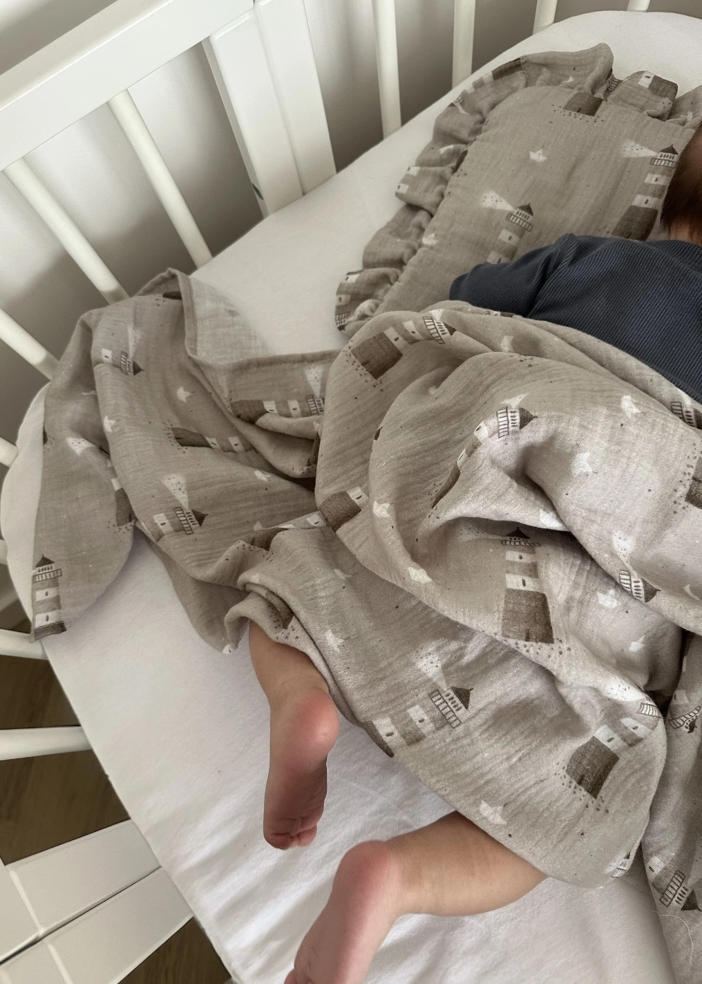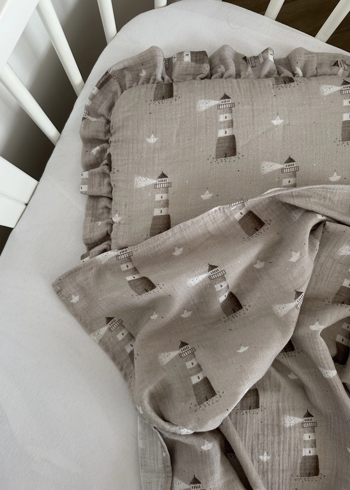 Komplet letni poduszka z falbanką i otulacz MUŚLIN