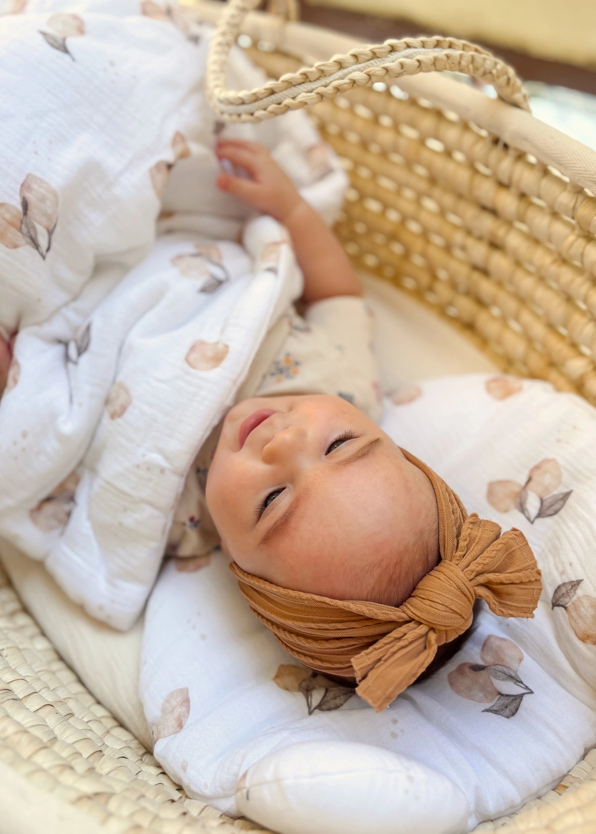 - Komplet muślinowy jest niezwykle przyjemny, miękki i delikatny dla skóry dziecka, dzięki czemu doskonale sprawdzi się już od pierwszych dni życia.