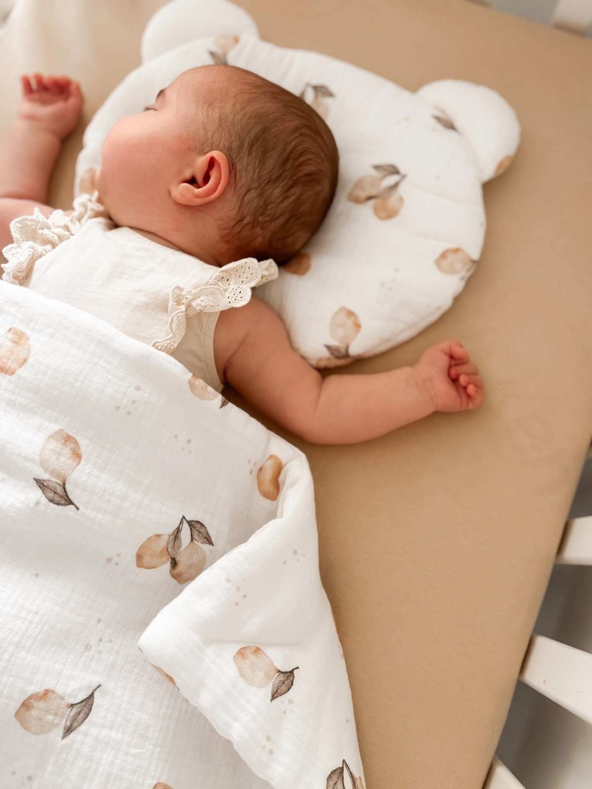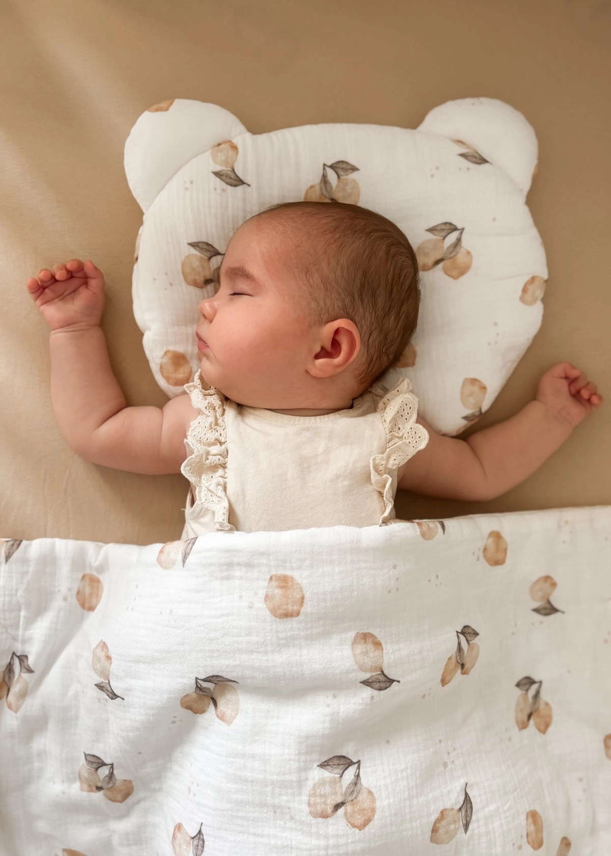 Poduszeczka w zestawie jest płaska - ok.3cm wysokości, stworzona specjalnie dla niemowląt.