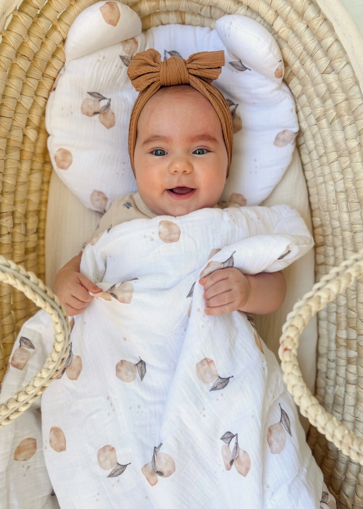 Komplet muślinowy jest niezwykle przyjemny, miękki i delikatny dla skóry dziecka, dzięki czemu doskonale sprawdzi się już od pierwszych dni życia.