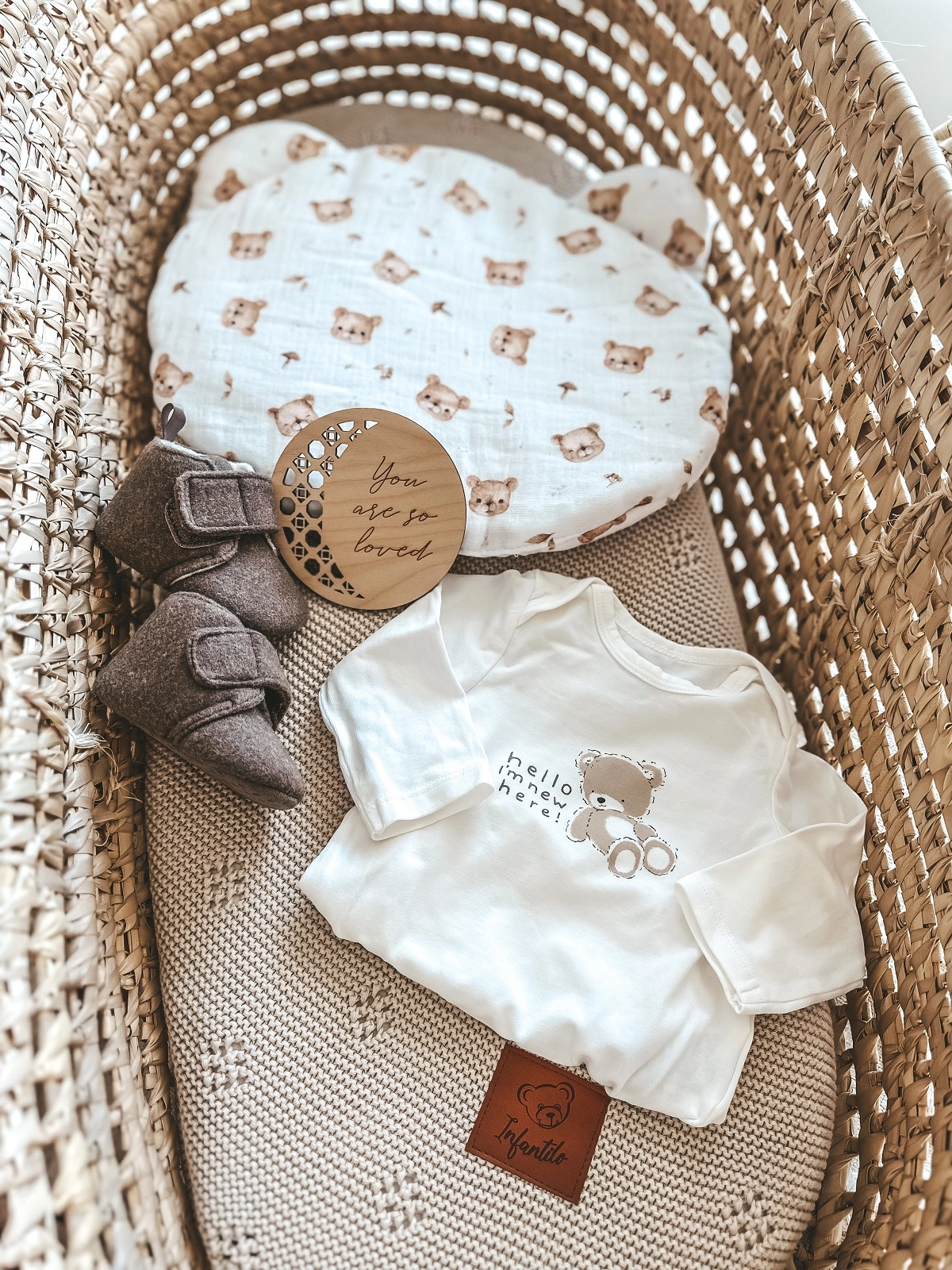 - Komplet muślinowy jest niezwykle przyjemny, miękki i delikatny dla skóry dziecka, dzięki czemu doskonale sprawdzi się już od pierwszych dni życia.
