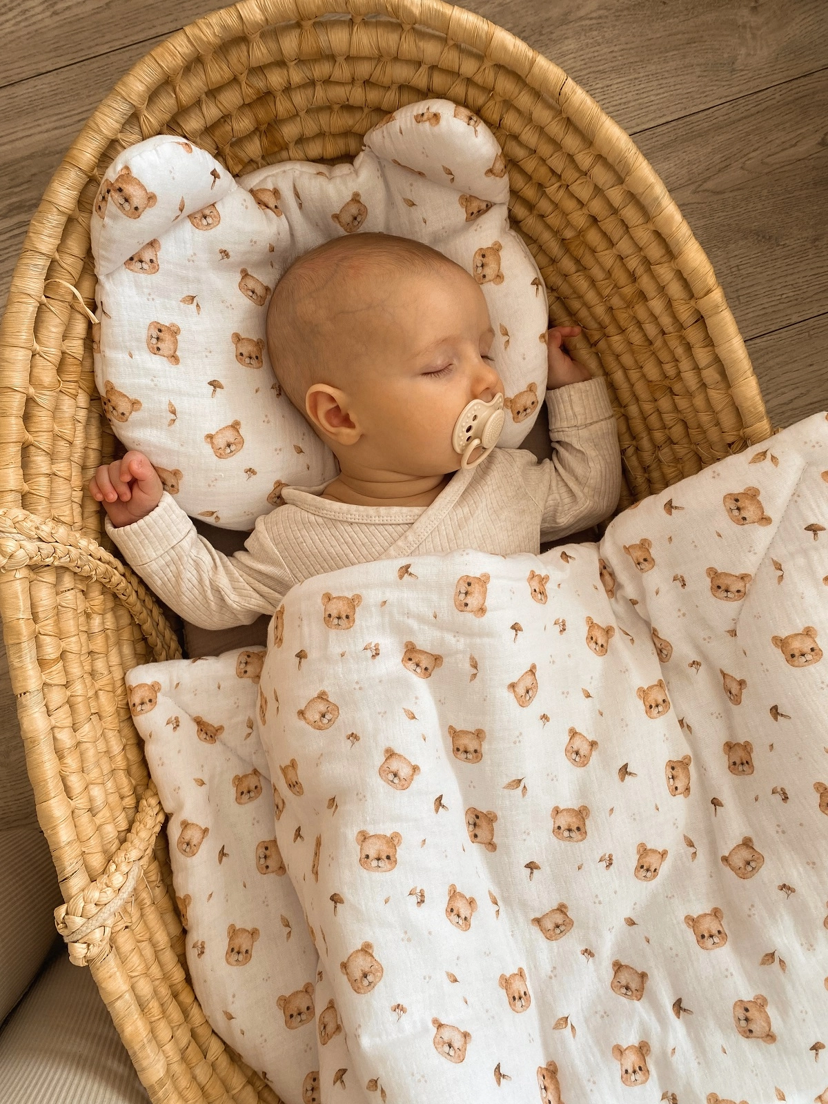 Komplet MUŚLINOWY + poduszka TEDDY "TEDDY BEAR"