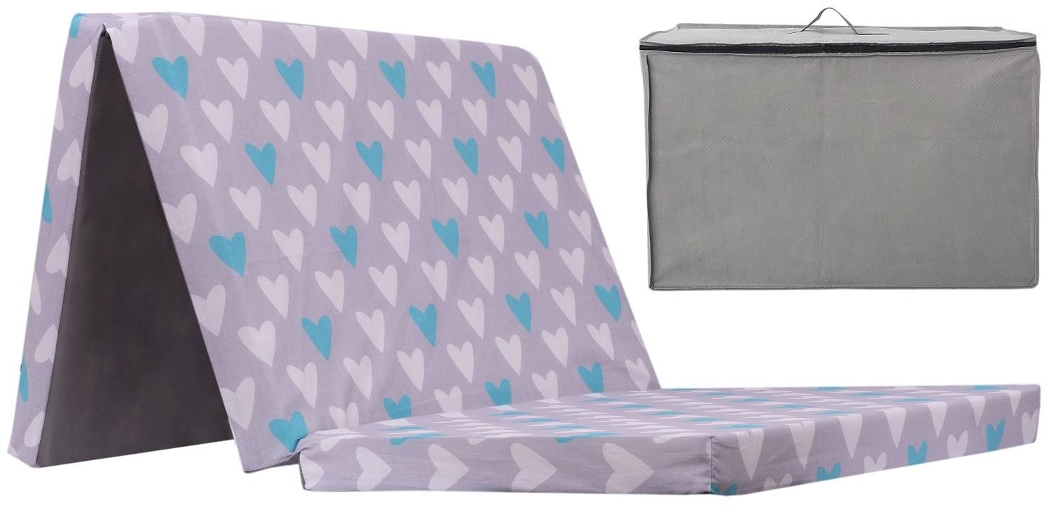 Po rozłożeniu materac osiąga wymiar standardowego łóżeczka dziecięcego – 120 × 60 × 5 cm – zapewniając komfortowy sen maluchowi.