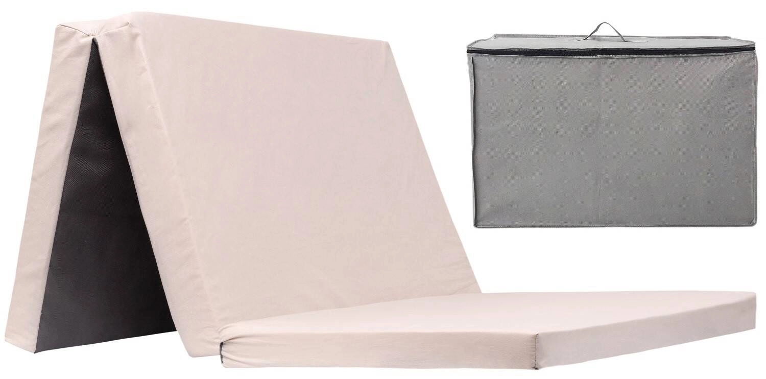 Dzięki potrójnemu składaniu materac zajmuje niewiele miejsca – po złożeniu ma kompaktowe wymiary ok. 60 × 40 × 15 cm, co ułatwia jego przechowywanie i transport.