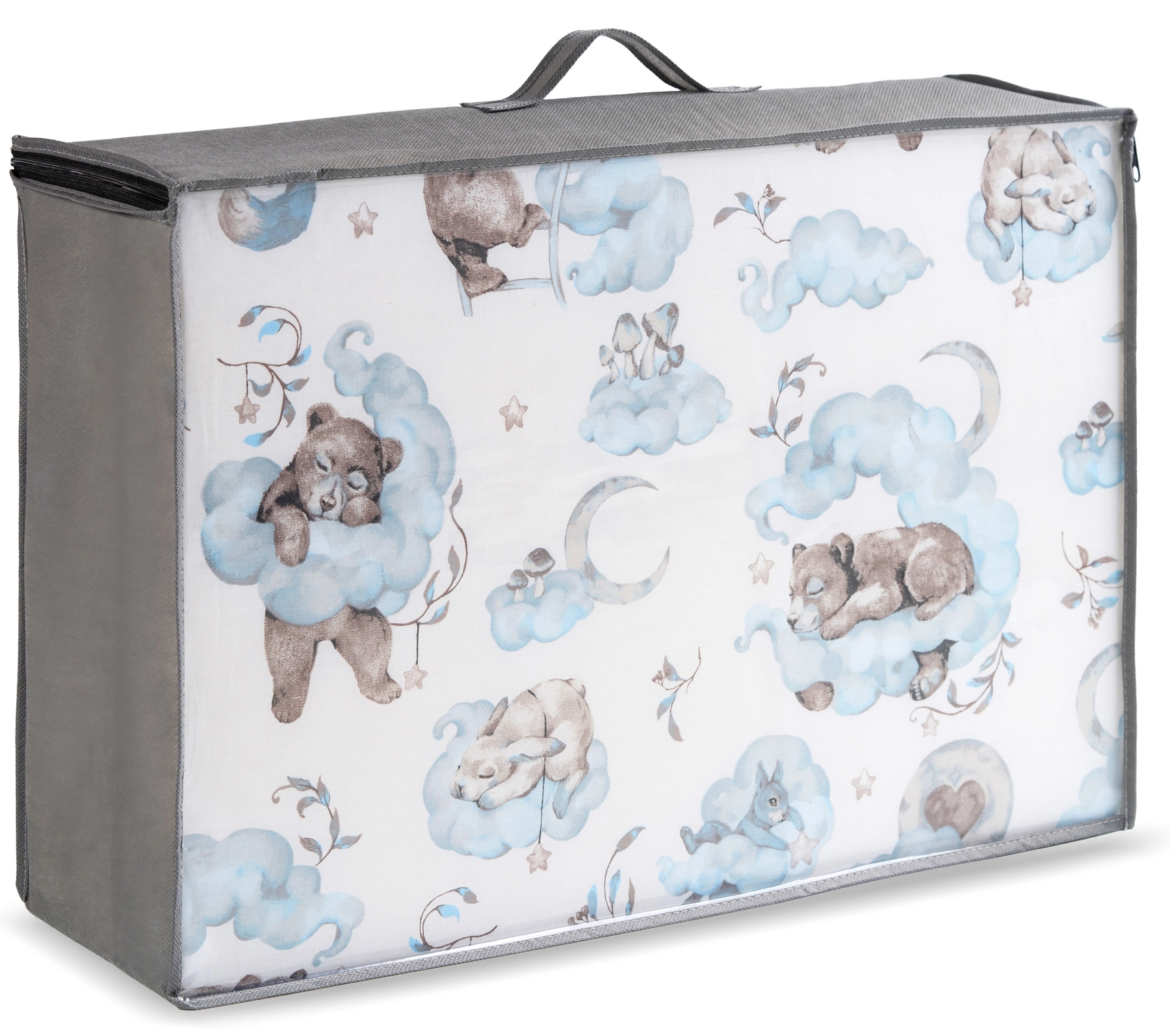 Pokrowiec wykonany ze 100% naturalnej bawełny jest miękki, przyjemny w dotyku i bezpieczny dla delikatnej skóry dziecka. Zamek błyskawiczny umożliwia łatwe zdejmowanie i pranie pokrowca.