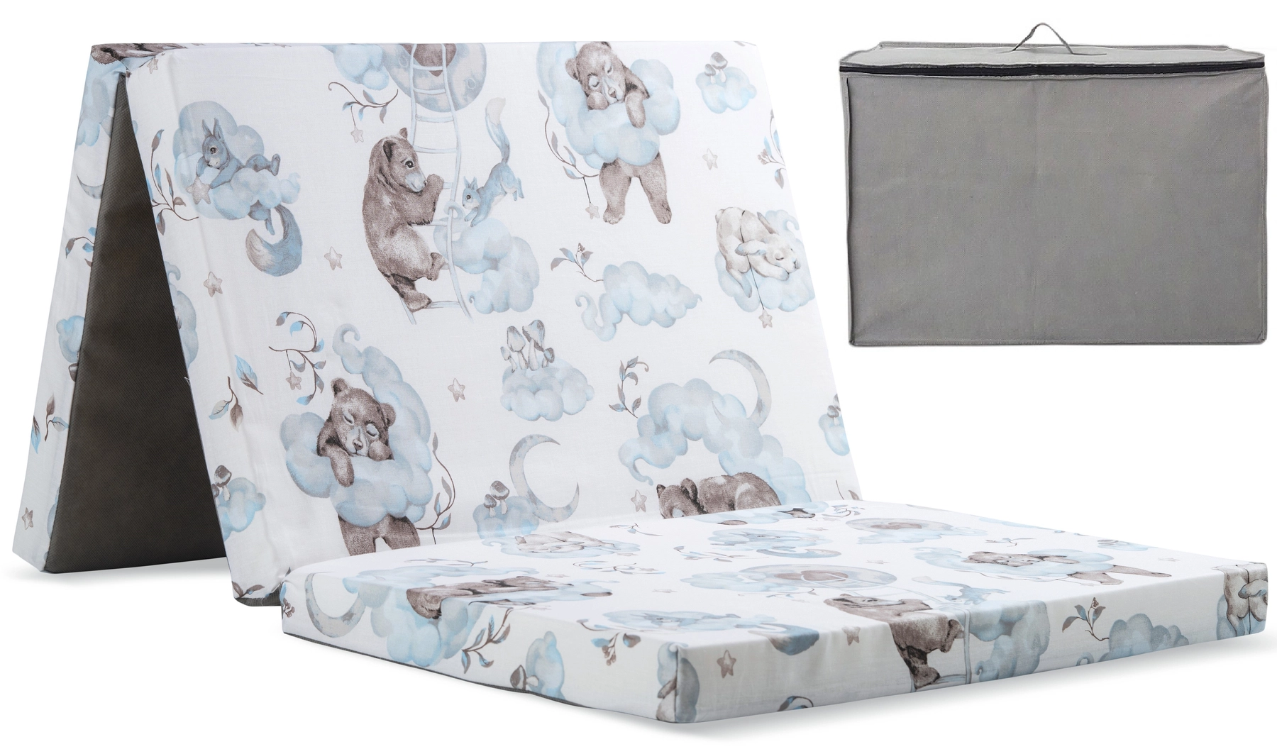 Po rozłożeniu materac osiąga wymiar standardowego łóżeczka dziecięcego – 120 × 60 × 5 cm – zapewniając komfortowy sen maluchowi.