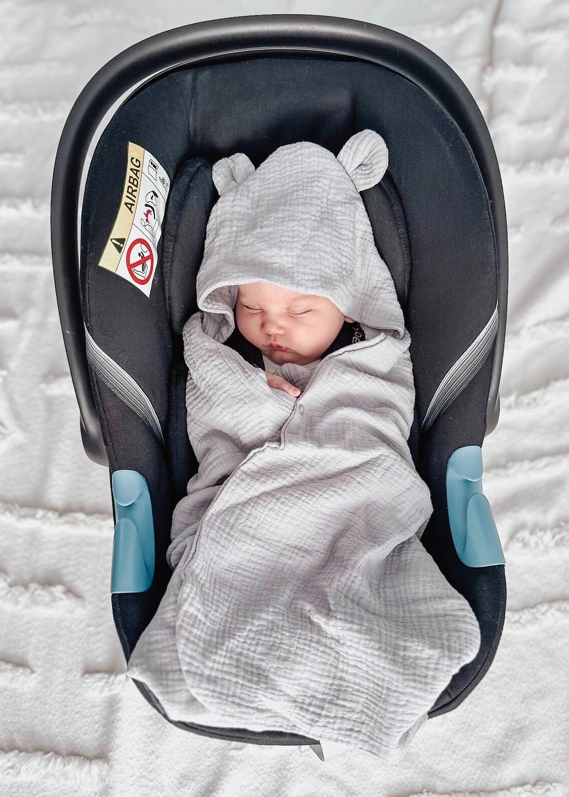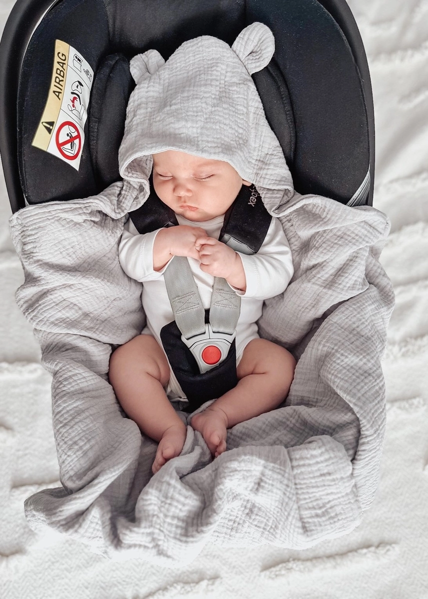 Otulacz z kapturkiem do fotelika to świetny pomysł na prezent z okazji narodzin maluszka czy baby shower.