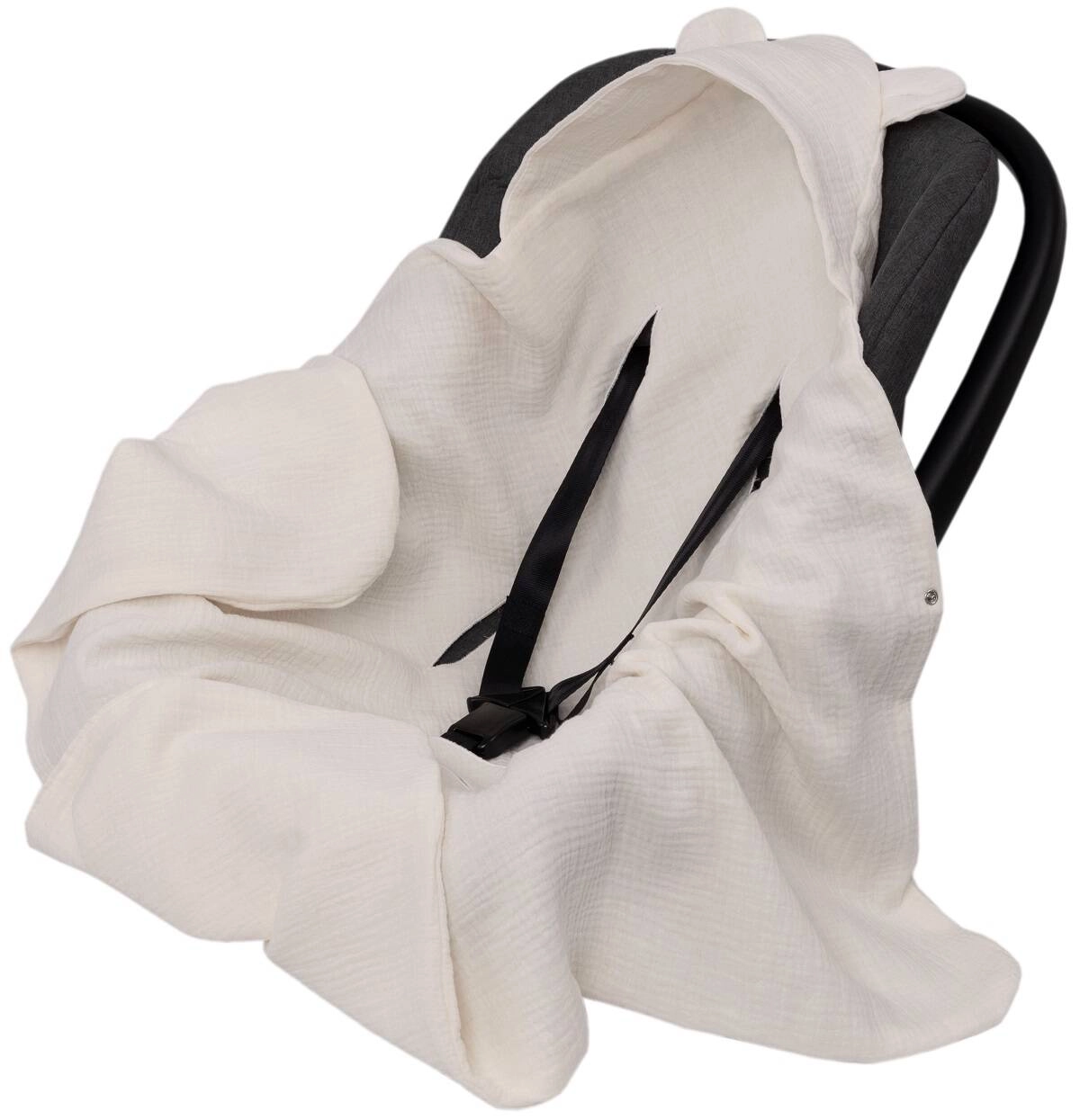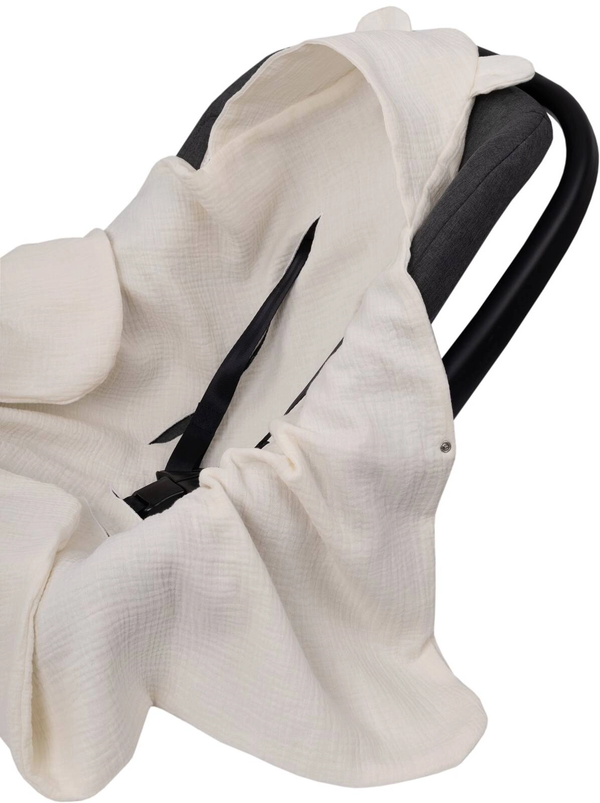 Muślinowy otulacz z kapturkiem do fotelika letni
