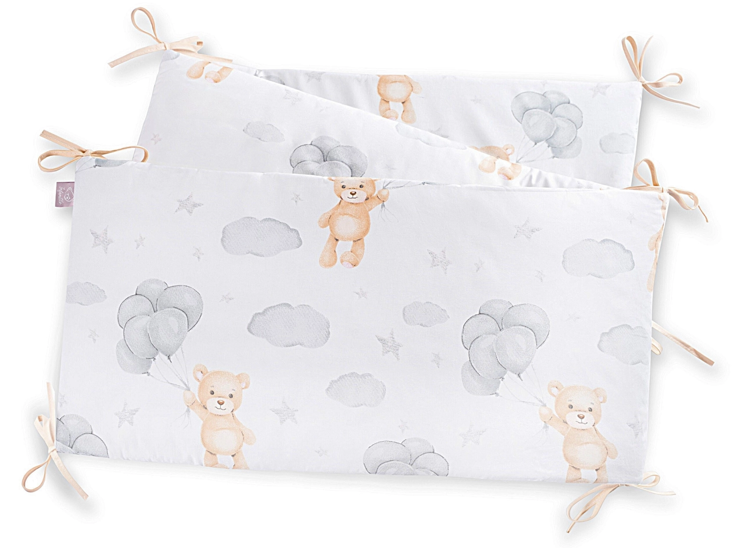 • Ochraniacz wiązany jest na troczki, dzięki temu nie przemieszcza się w łóżeczku.