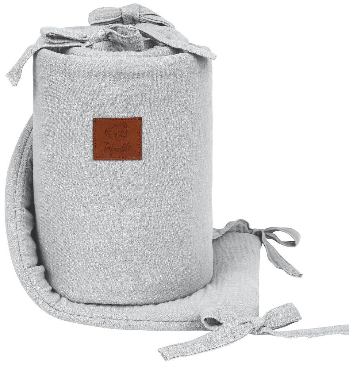 Ochraniacz do łóżeczka dziecięcego wykonany z delikatnego materiału MUŚLIN.