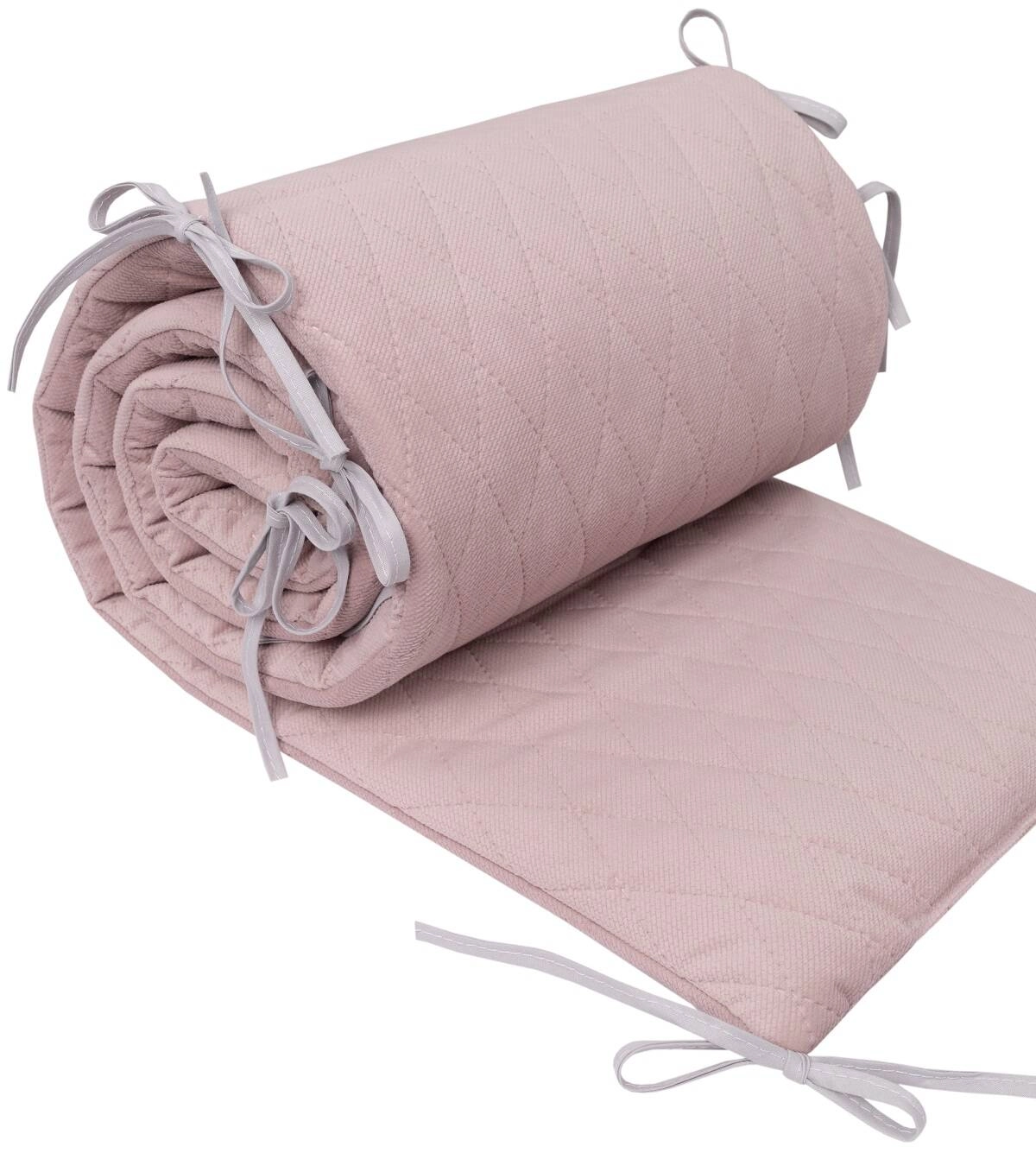 Ochraniacz wiązany jest na troczki, dzięki temu nie przemieszcza się w łóżeczku.