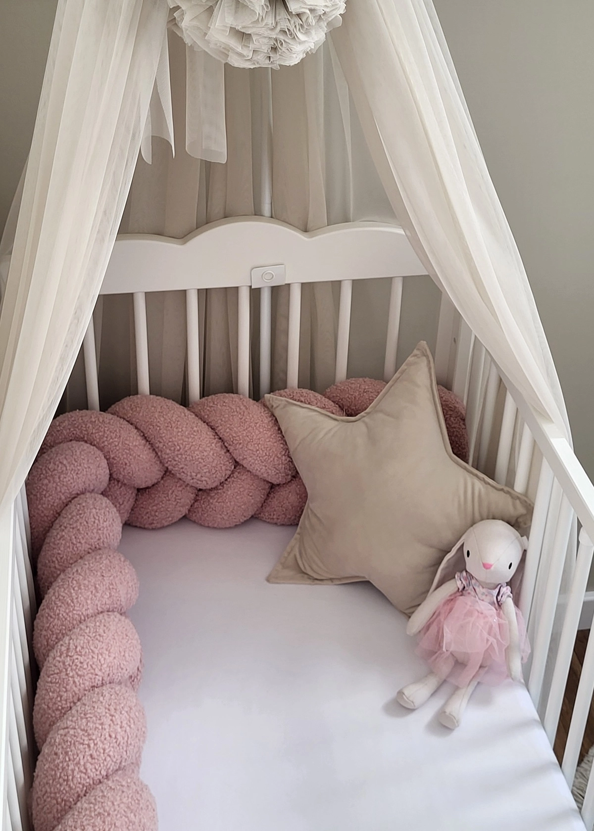 Ochrona i bezpieczeństwo – warkocz chroni maluszka przed uderzeniami o szczebelki łóżeczka i zapobiega zaklinowaniu rączek czy nóżek.