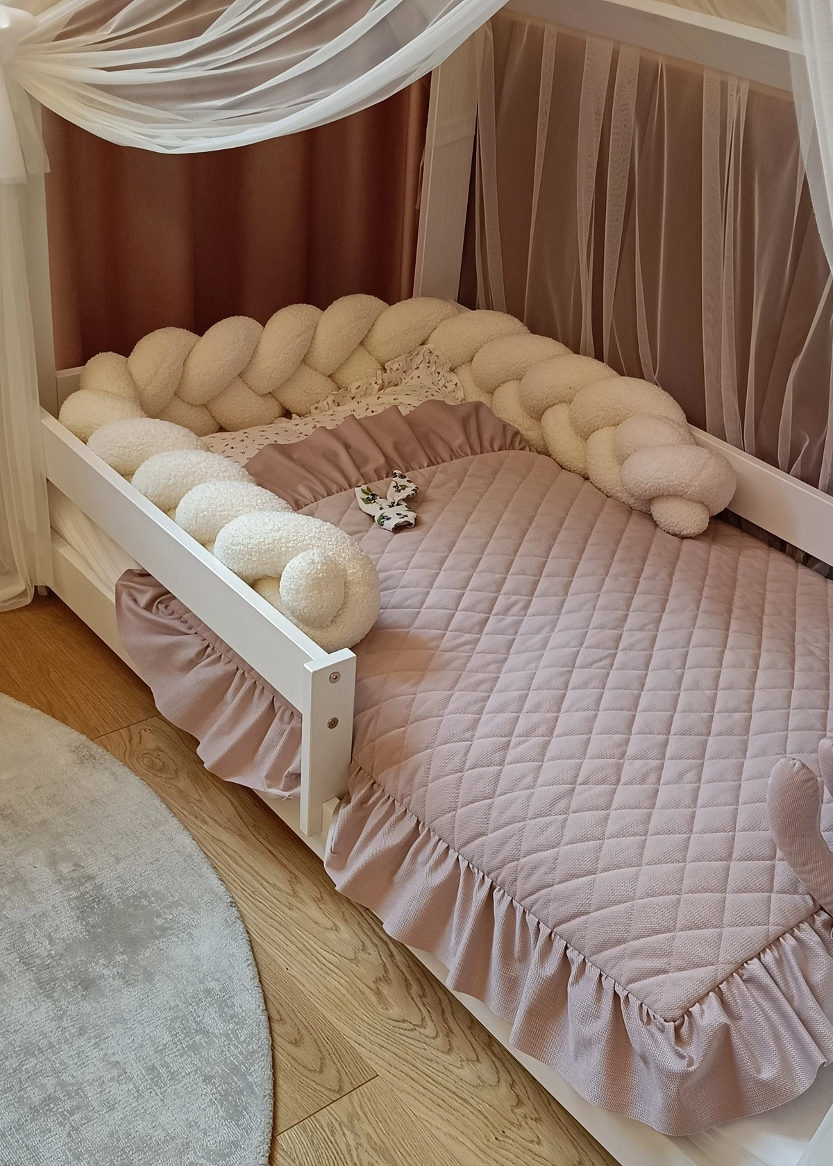 Miękki i przytulny materiał baranek boucle – przypomina pluszowy kocyk, zapewniając dziecku komfort i ciepło.Ochrona i bezpieczeństwo – warkocz chroni maluszka przed uderzeniami o szczebelki łóżeczka i zapobiega zaklinowaniu rączek czy nóżek.
