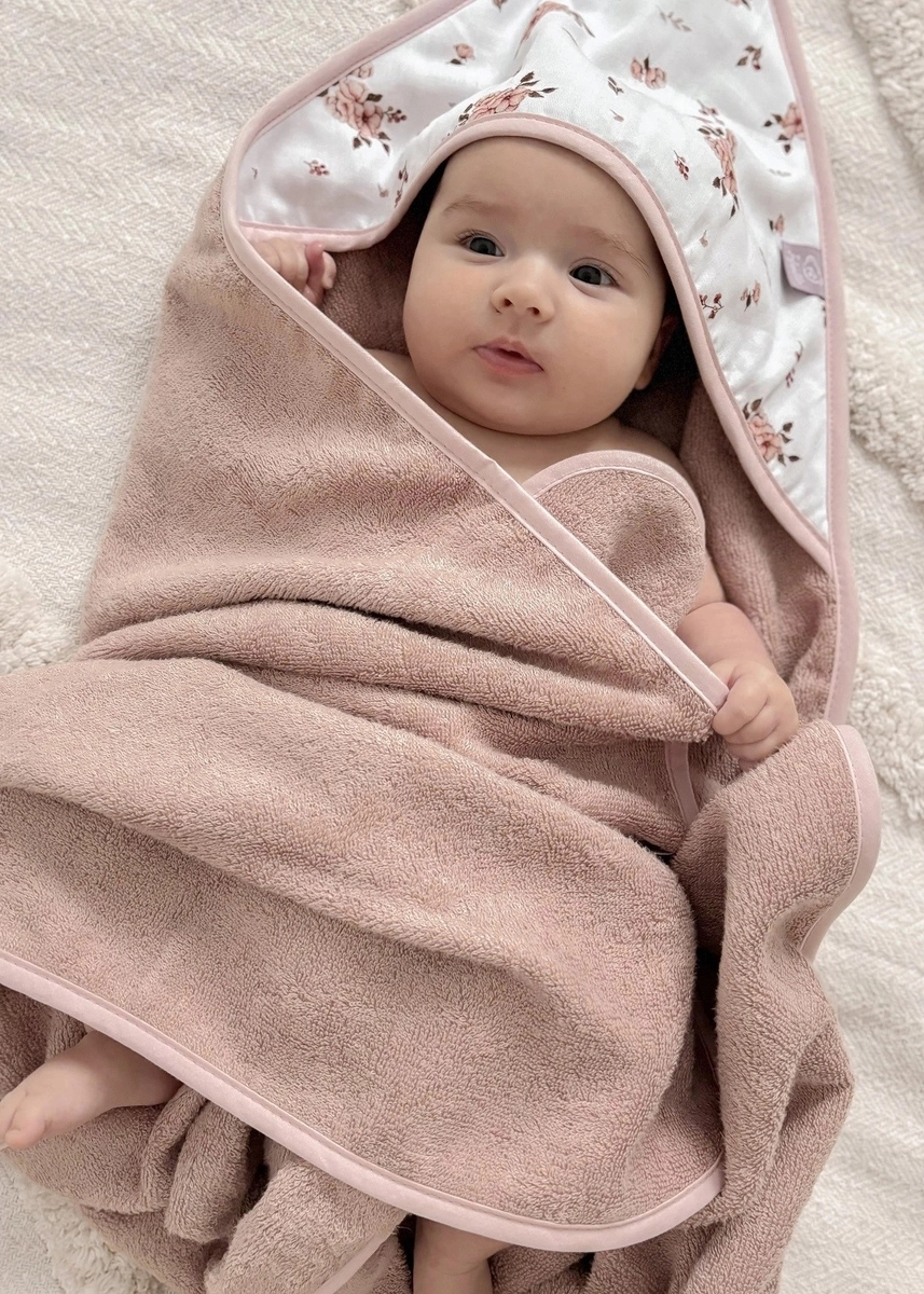 Okrycie kąpielowe wykonane z grubej tkaniny bambusowej i bawełny bardzo dobrze chroni dziecko przed chłodem, dając miłe uczucie ciepła i komfortu po kąpielowych zabawach. Bardzo miękki i przyjemny dla wrażliwej i delikatnej skóry materiał,nie powoduje podrażnień.