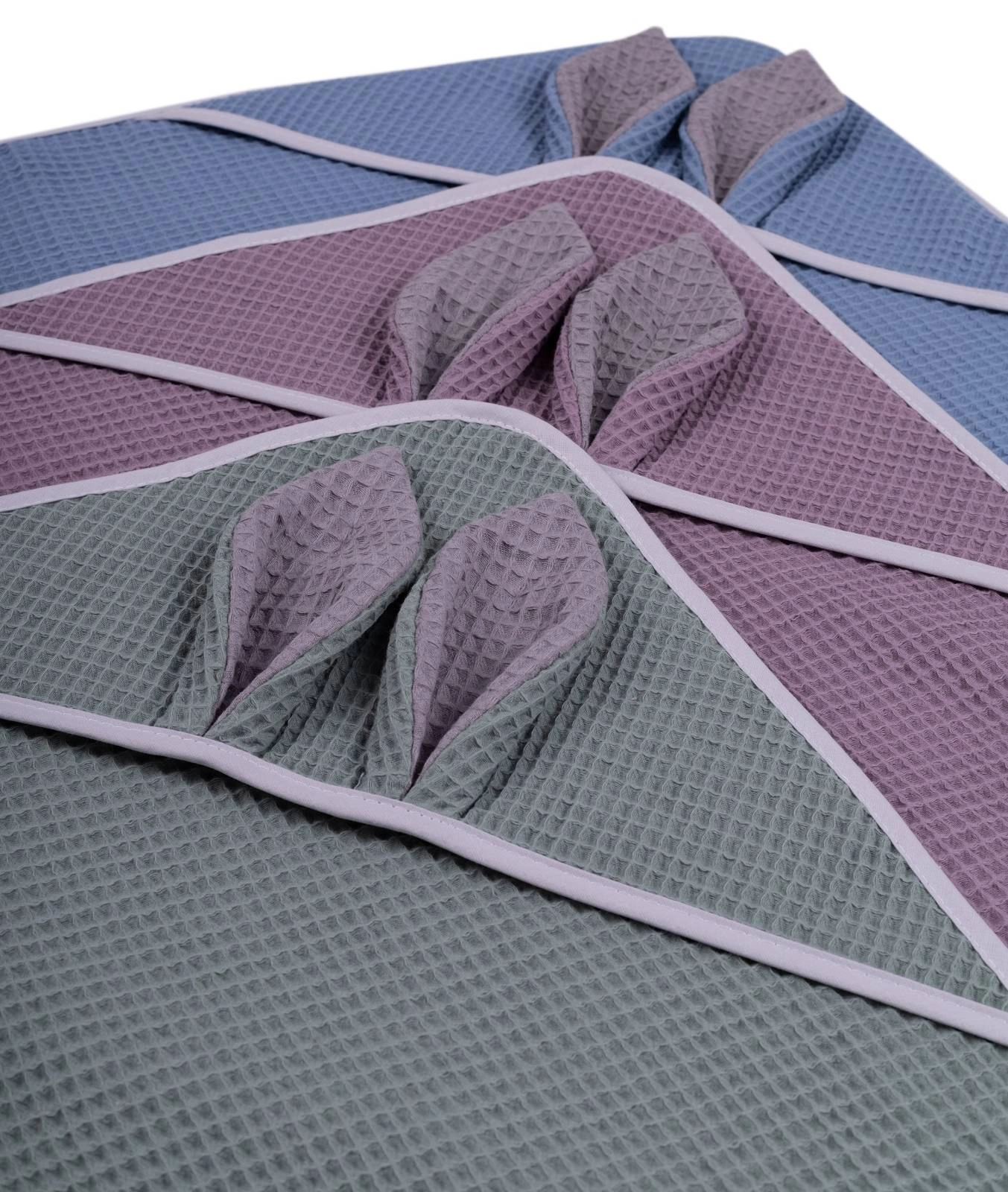 Okrycie kąpielowe uszyte z najwyższej jakości bawełny typu waffle obszyte lamówką.