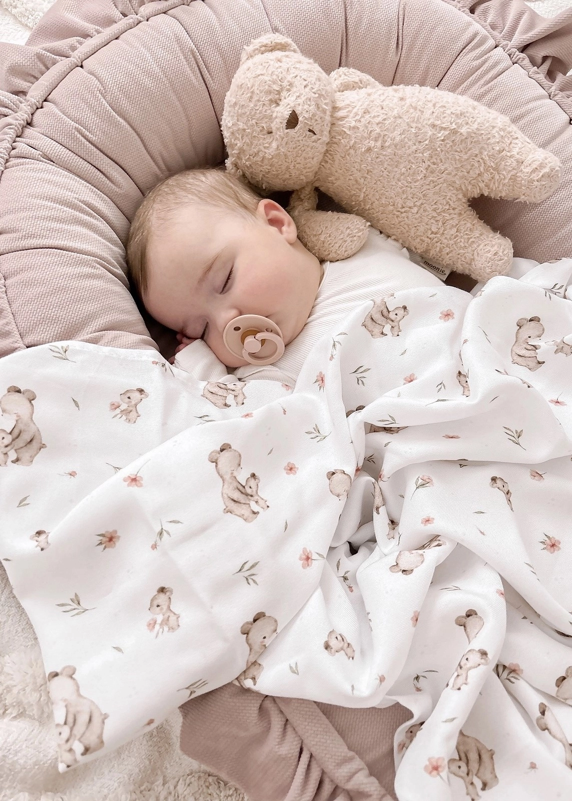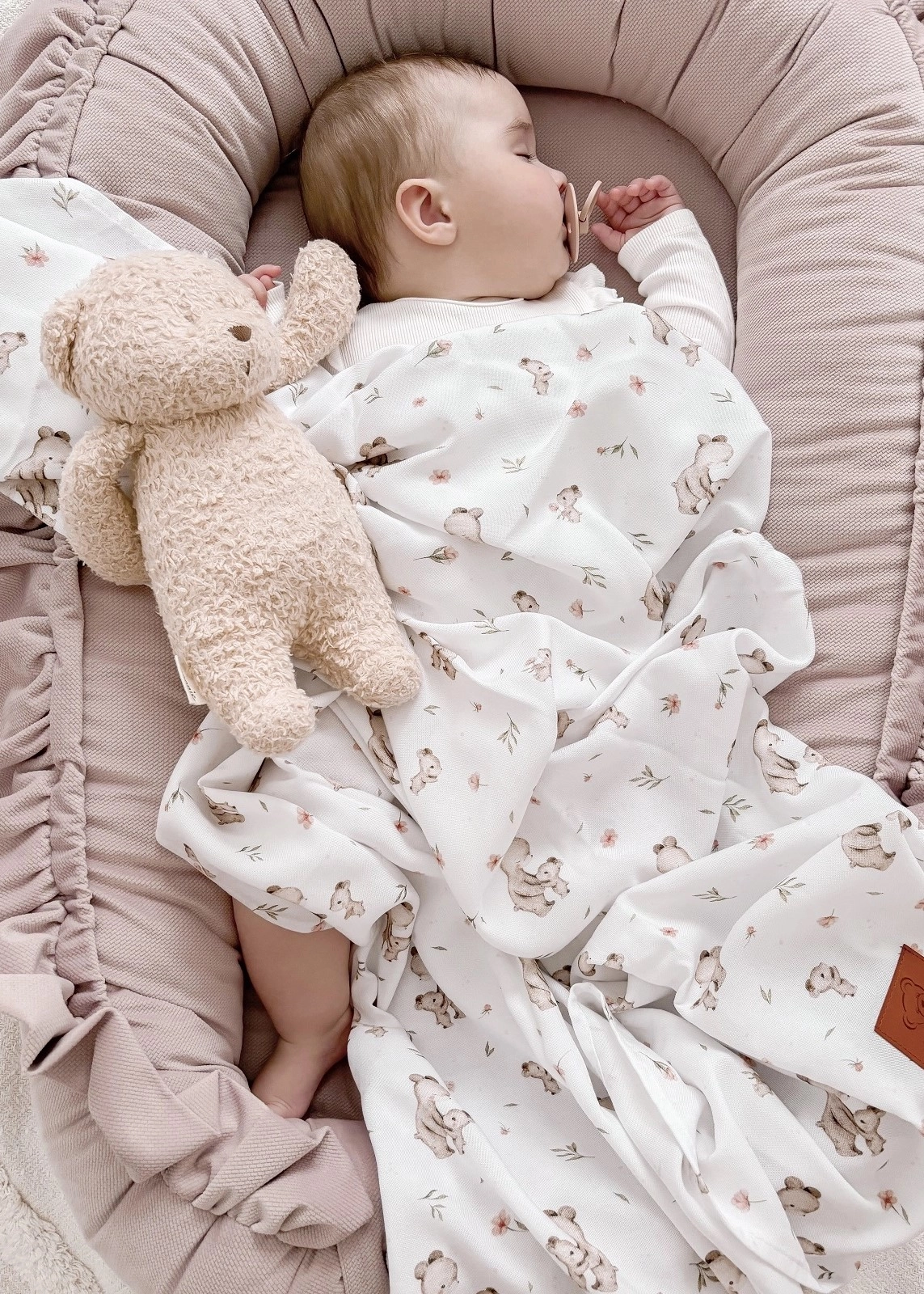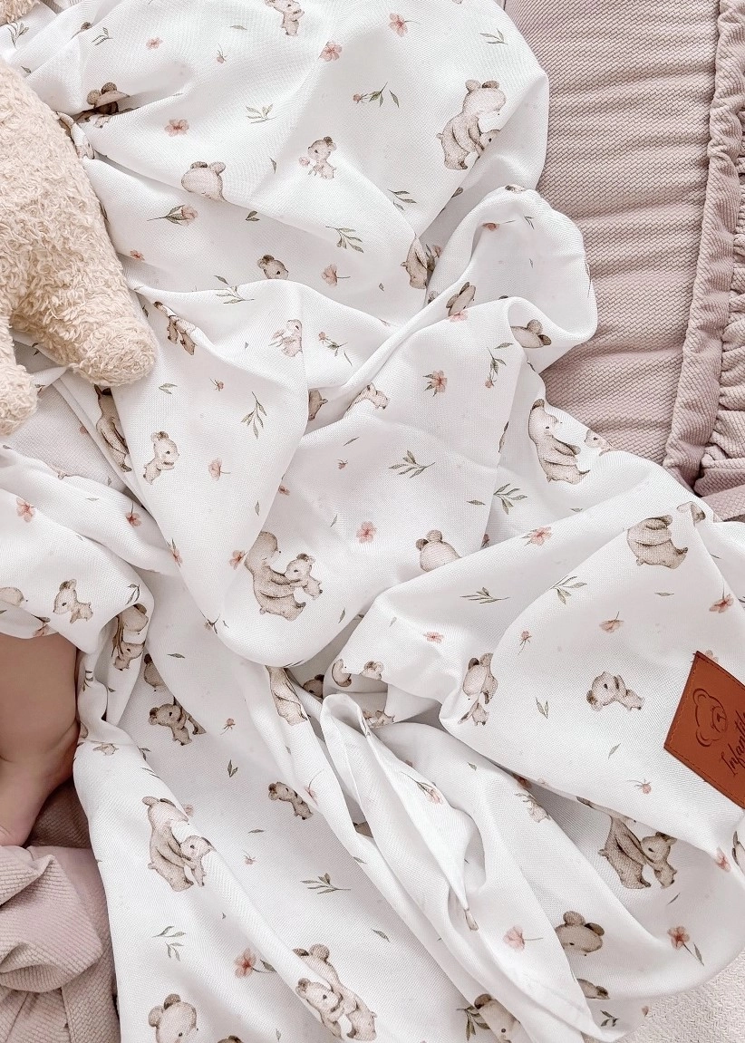 Kocyk idealnie nadaje się do wózka, łóżeczka czy kołyski.